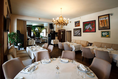 Подают устриц и морских ежей во льду, тартары и карпаччо из рыб, фаршированного по-еврейски карпа, форшмак из сельди. Интересный, но короткий раздел с рыбными супами: буйабесом, рыбной солянкой и сибирской ухой из трех видов рыб. В горячих блюдах — спокойная и слегка старомодная классика: спагетти с морепродуктами или крабом, стейк из тунца и лосося, сибас по-лигурийски, треска на пару, котлетки из щуки и жареный осьминог с картофельным пюре. В общем, предсказуемо, но вкусно.