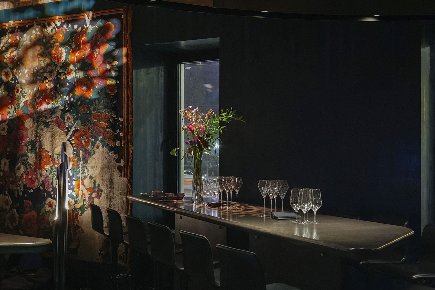 Кухня стоит отдельного упоминания. К вину предлагают пригожие бутеры с селедкой и сливочным маслом или пухлые гужеры с трюфелем и салом, готовы поднести ложку черной икры или полновесный аранчини с хамоном. Приличная подборка горячего в диапазоне от сибаса на пару до лопатки ягненка с редисом, так что место вполне подойдет для винных ужинов.