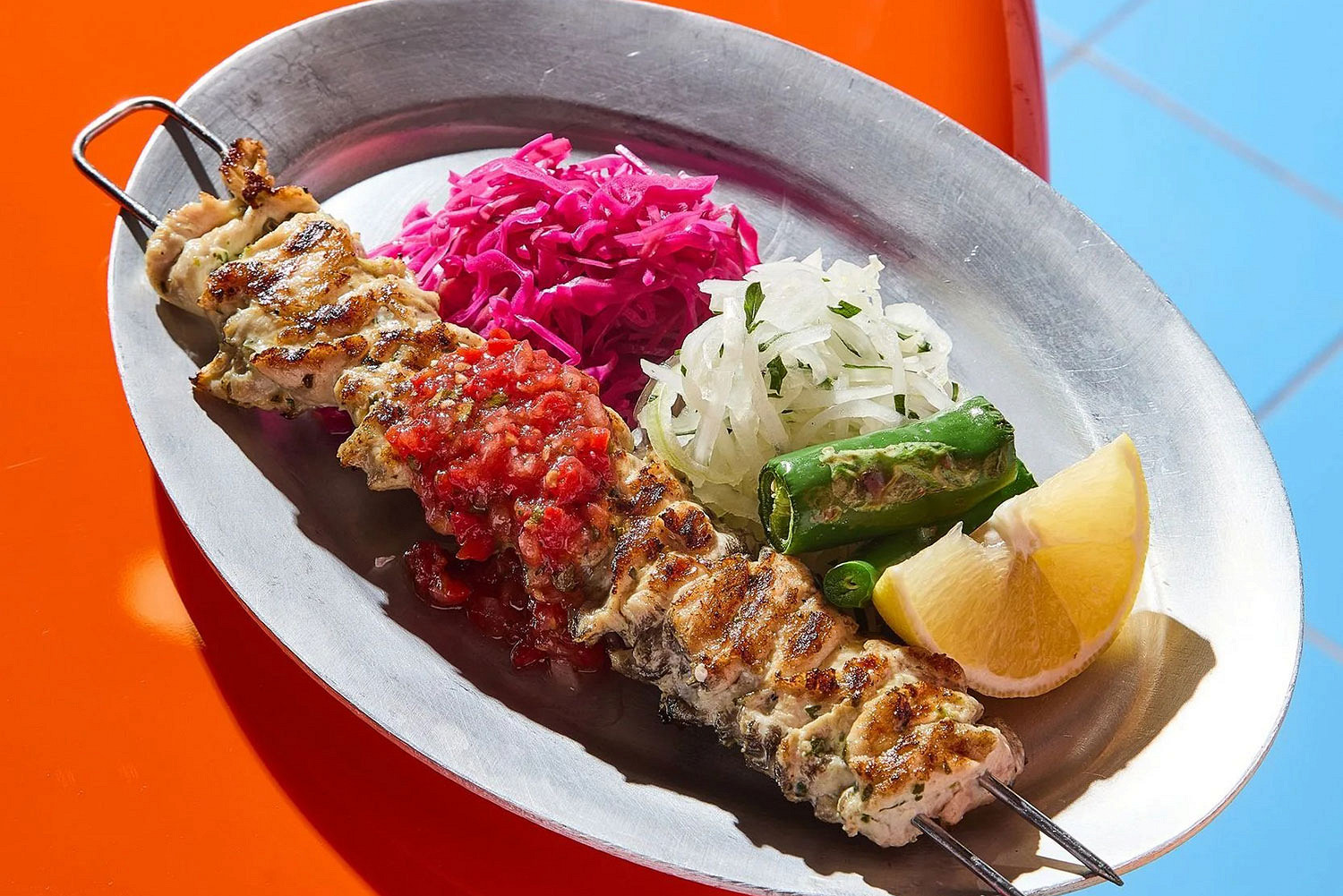 Сувлачная с глянцевым ретроинтерьером от Константина Атмаджана, владельца кебабной So Far Kebab. В Papandopulo ставка сделана на Грецию, но с локальными апгрейдами.