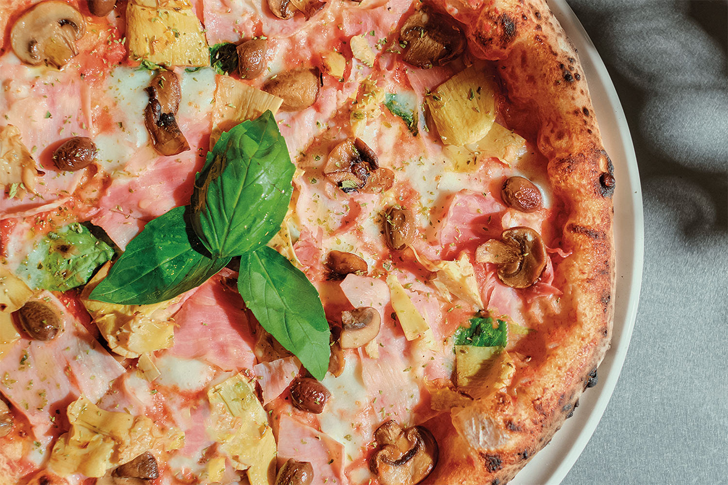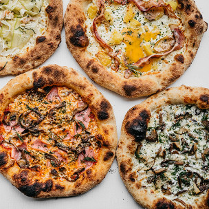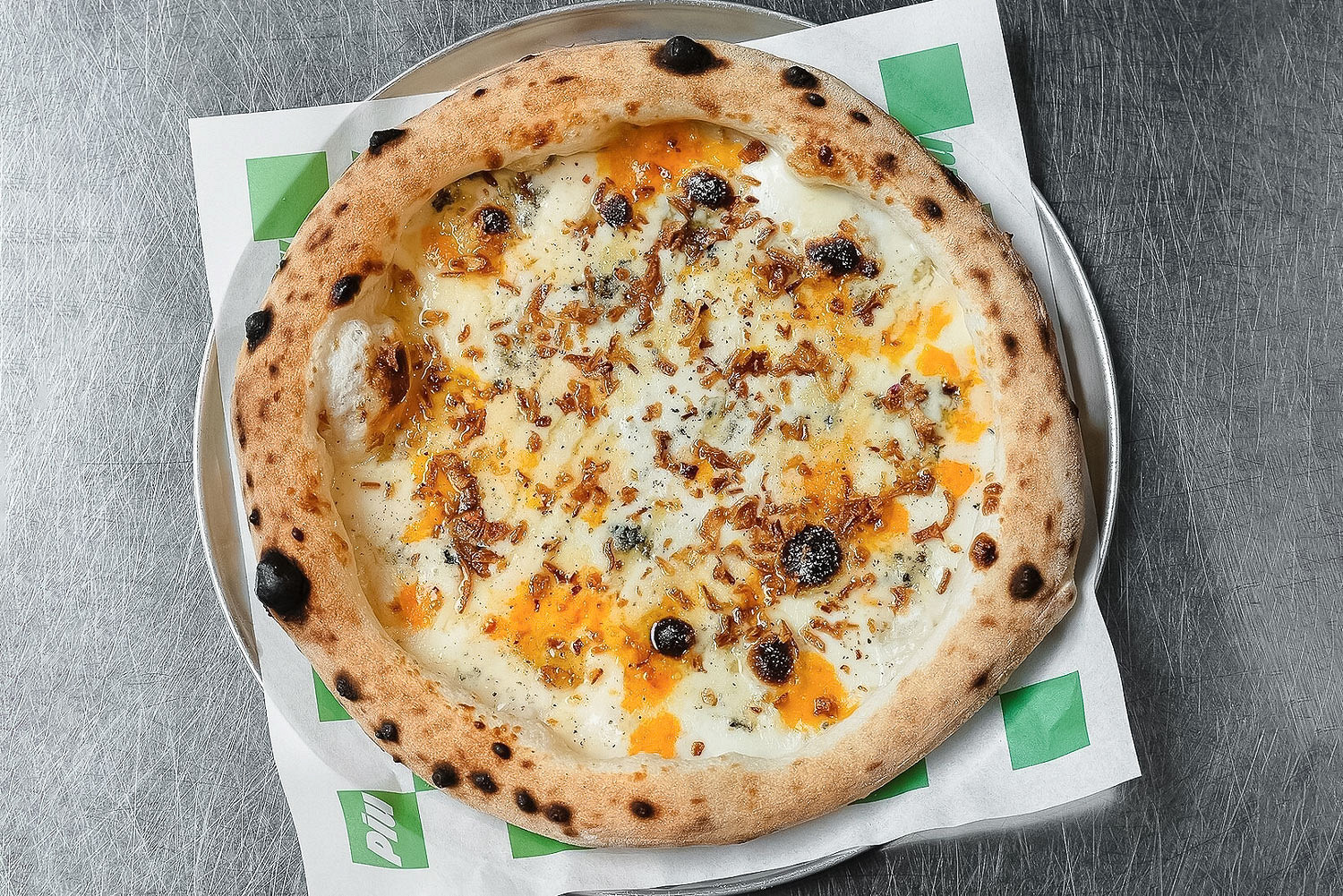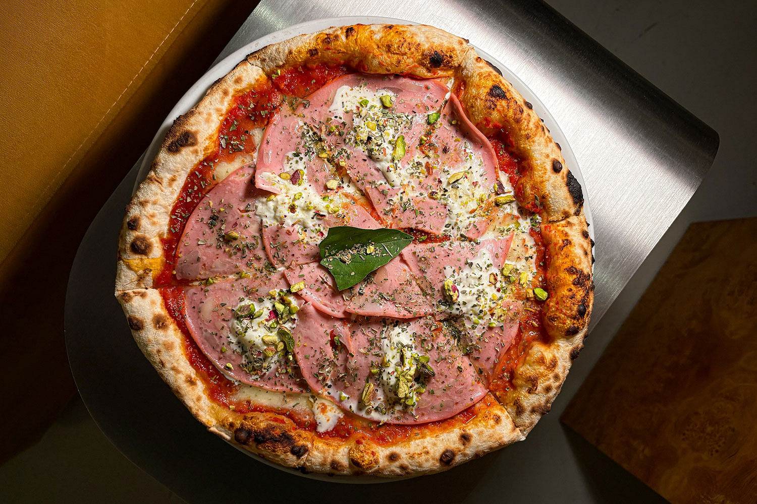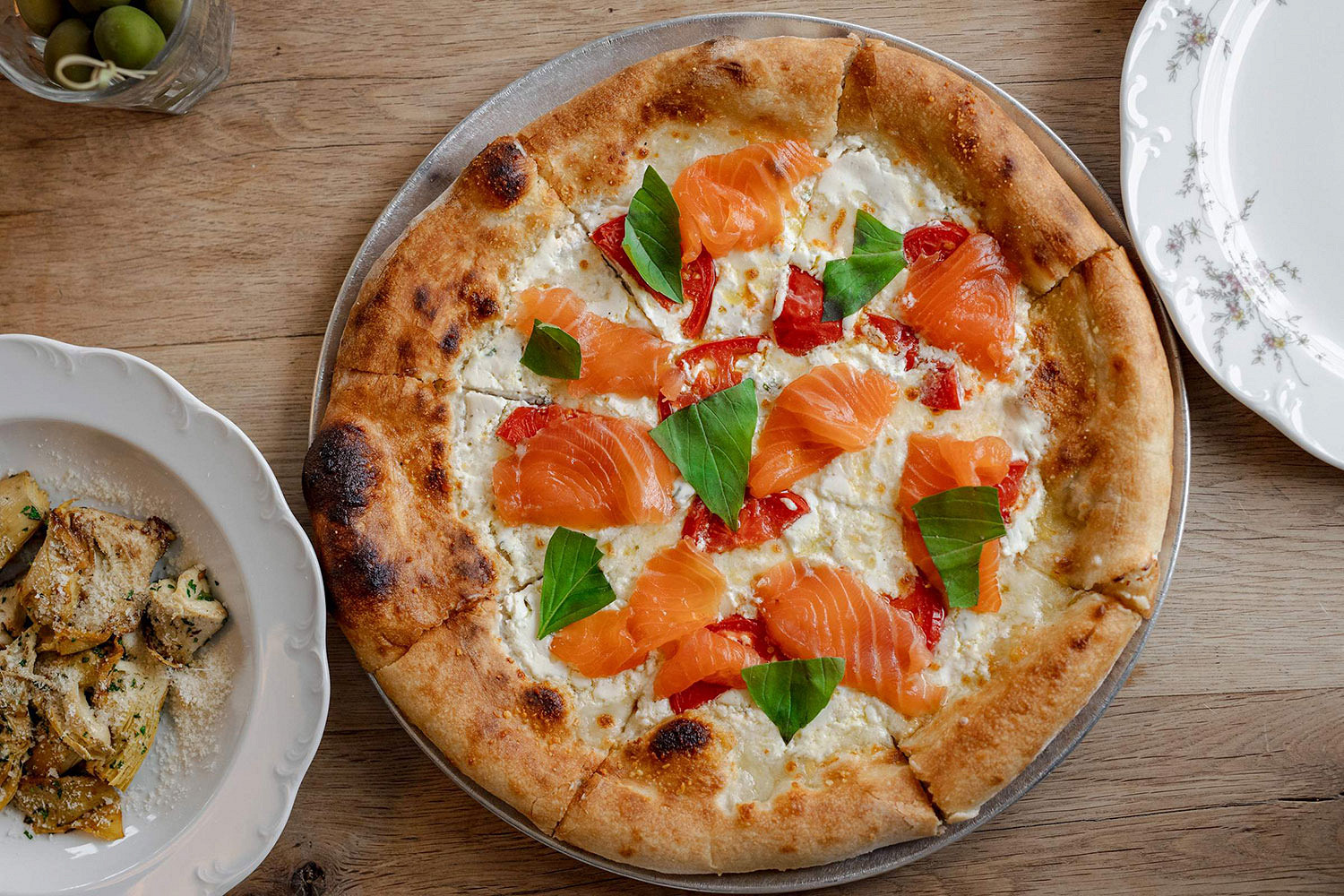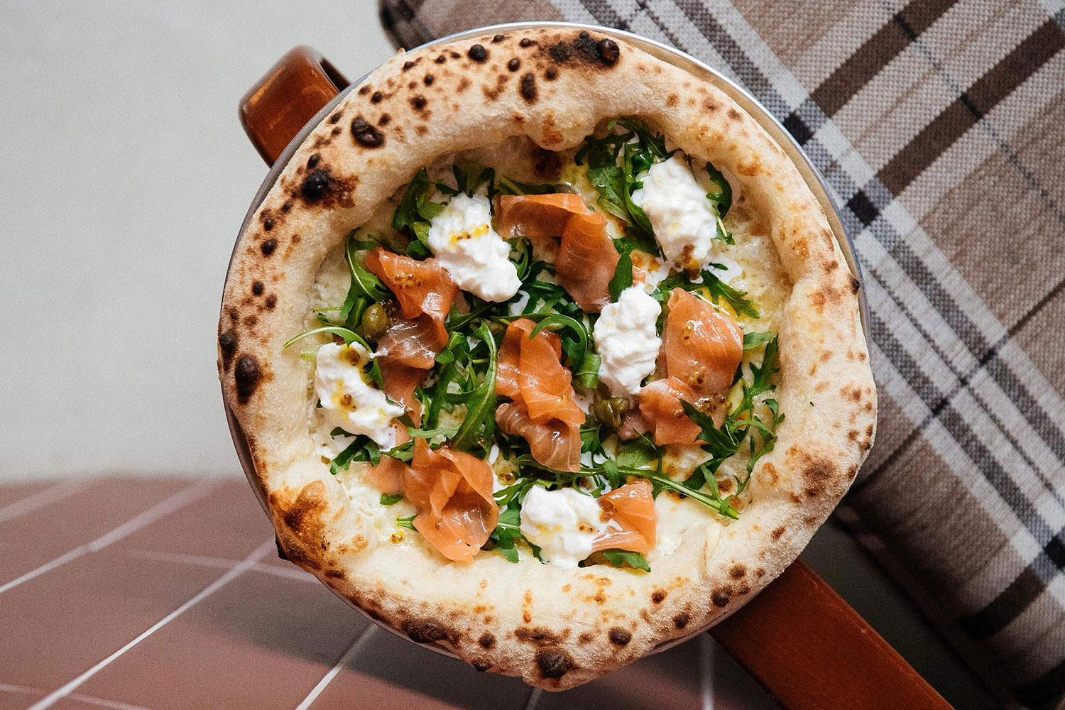 Для приготовления теста для пиццы используют итальянскую муку из мягких сортов пшеницы. Тесто выдерживают в течение 24 часов, а потом выпекают пиццу в дровяной печи. Выбор внушительный: есть восемь видов пиццы из «Нового света», то бишь экспериментальной, и столько же классических версий вроде «Маргариты», «Маринары», «Неаполитаны» и прочих хорошо знакомых названий. В «Новом свете» — пицца с лососем, красной икрой и лимонной заправкой; пицца с мраморной говядиной, беконом и сыром раклет; с курицей в специях заатар и вялеными томатами; с горгонзолой, грушей и суджуком и прочие перепридумки классики.