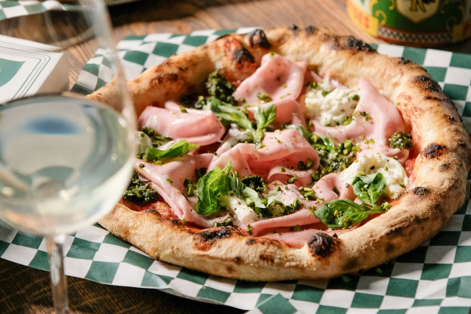Помимо небольших закусок вроде брускетт, вителло тоннато и тартаров, больших зеленых салатов и пасты, готовят пиццу. В меню 13 близких к классике версий: острая «Дьявола» с пепперони, пицца с мортаделлой, фисташками и страчателлой, груша с горгонзолой, форель со страчателлой и другие комплиментарные сочетания. Сама пицца компактная, с пухлыми румяными корочками — удобно взять на двоих и заказать что-нибудь из закусок или миланезе из цыпленка на горячее.