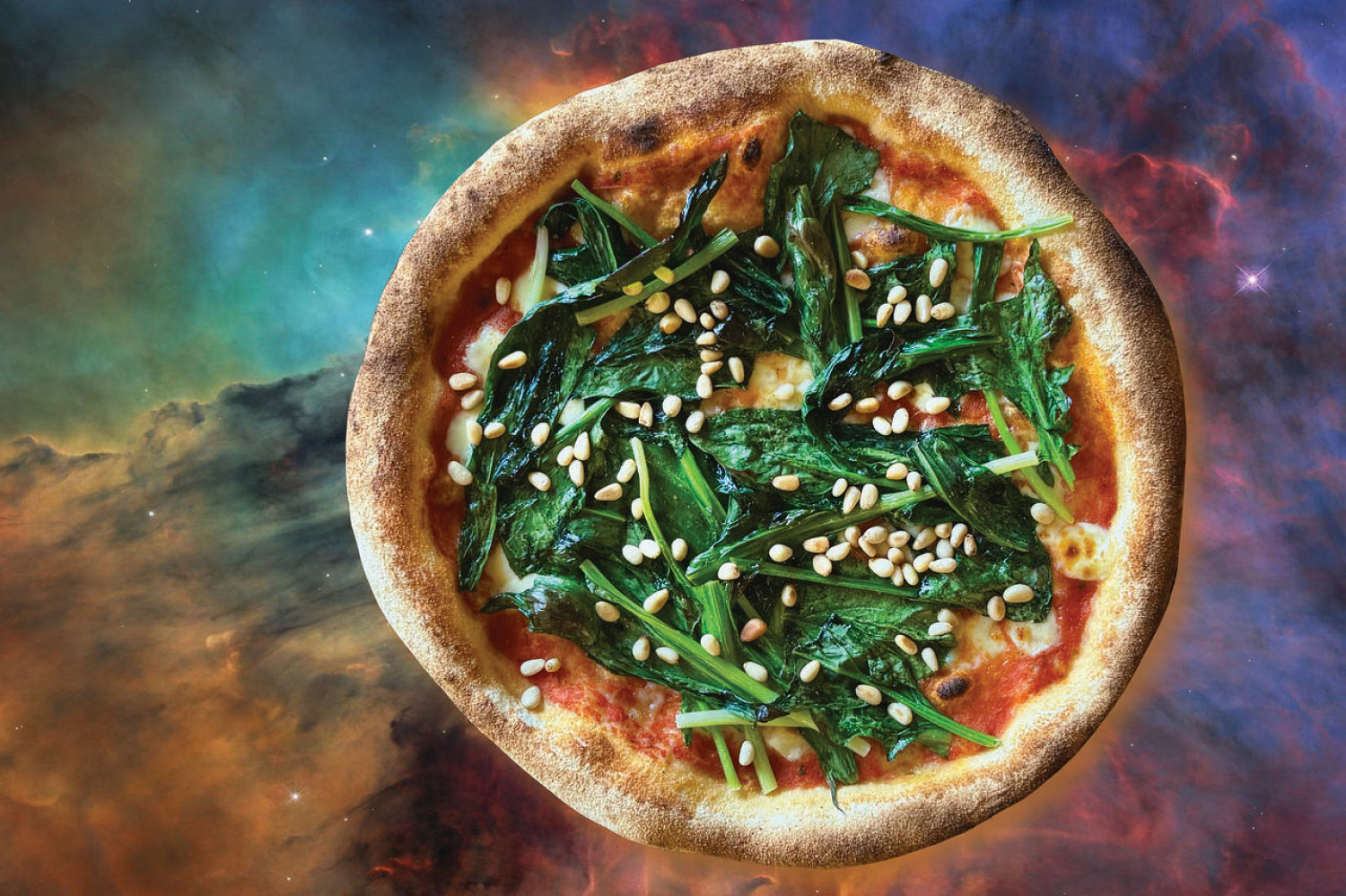 Готовят 25-сантиметровую пиццу на образцовом пухлом тесте с аккуратной корочкой. Все вкусы — с отсылками к космическим приключениям: Dark side of the spoon с соусом из квашеных томатов, фрикадельками из индейки, чеддером и халапеньо; Astronom nom c грибами, беконом, соусом бешамель и тремя видами сыра; «Суперновая Маргарита» с соусом из квашеных томатов и сулугуни; или «Ветчинаса» с соусом из квашеных томатов, зеленой сальсой, рикоттой, сулугуни и ветчиной.