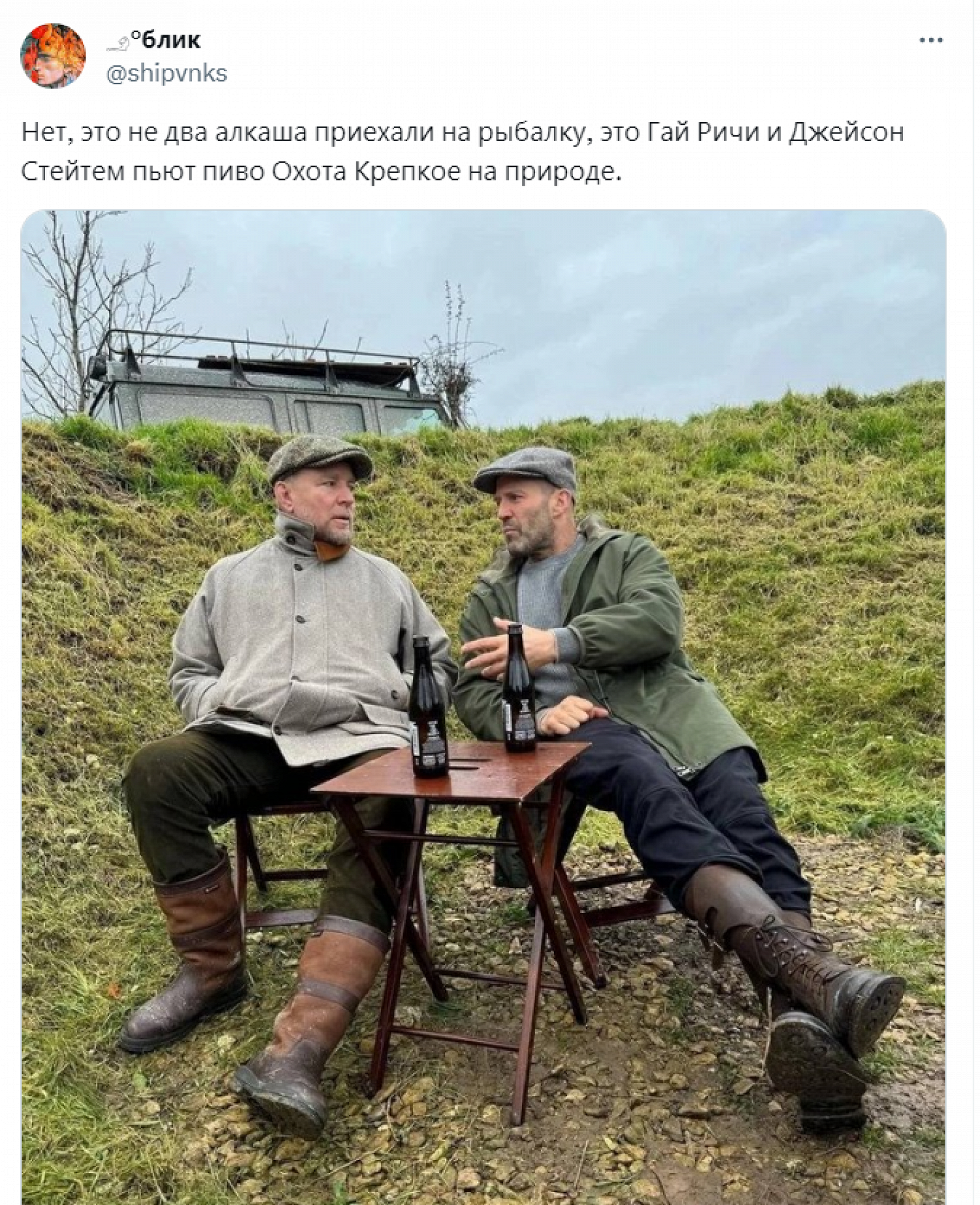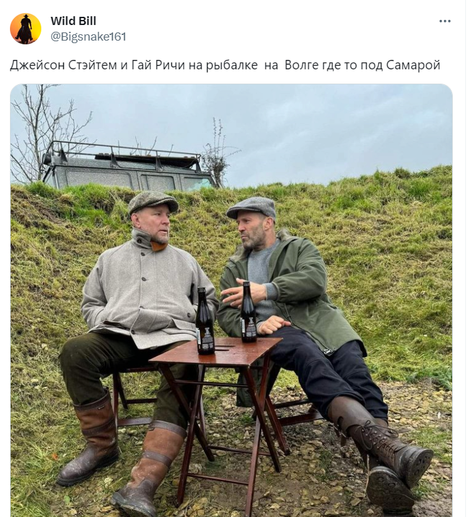 В твиттере посчитали, что Стэтем и сам похож на типичного россиянина, выбравшегося с другом на рыбалку.