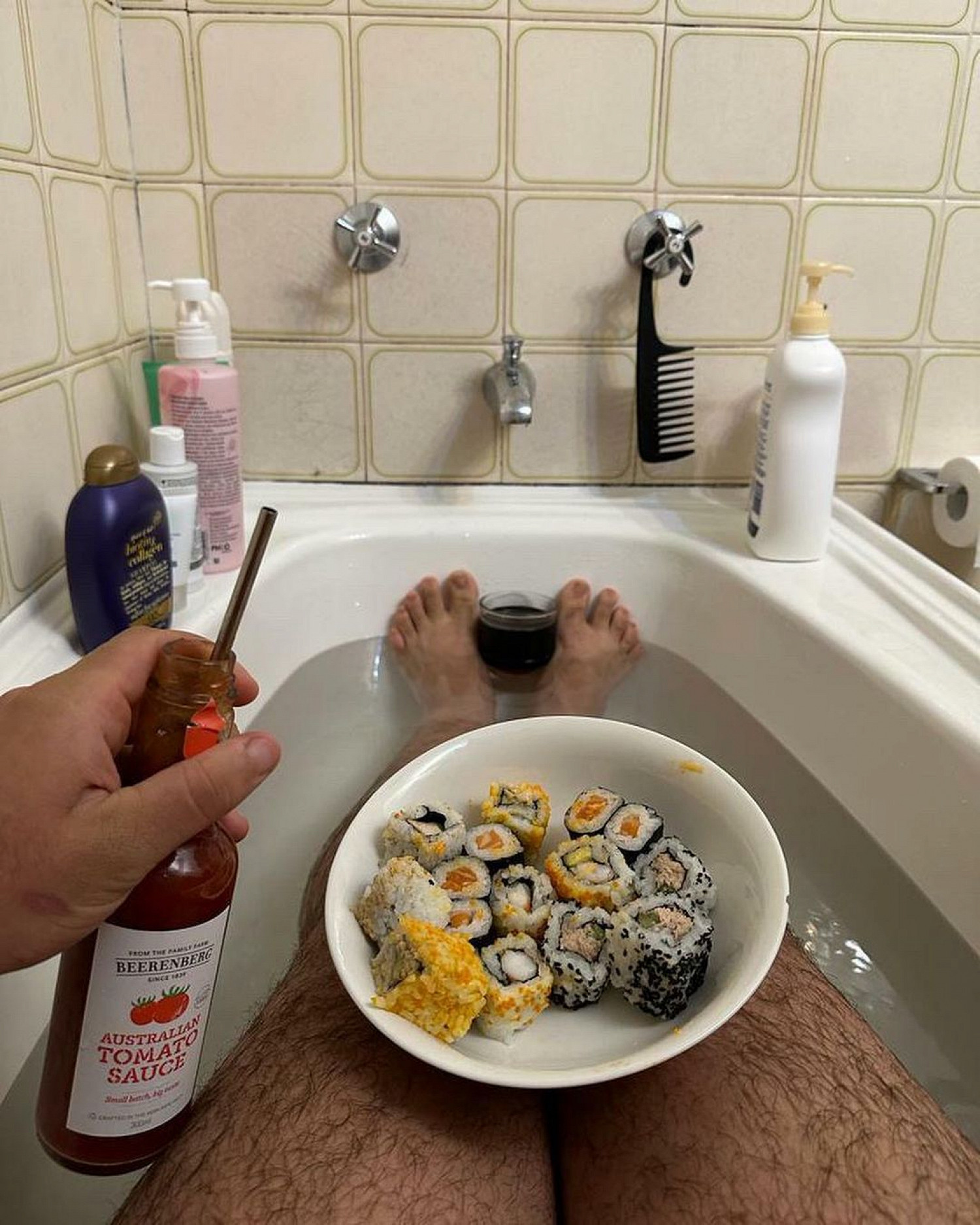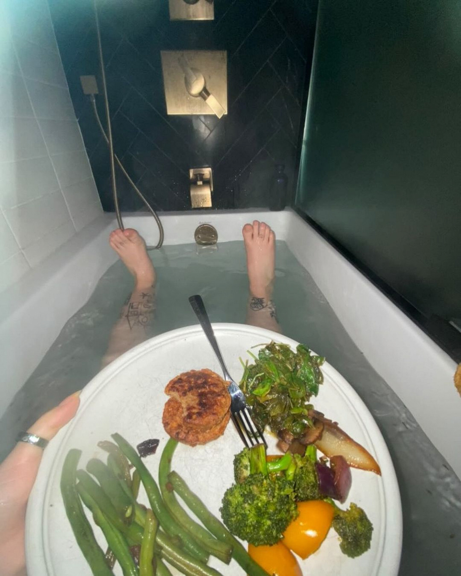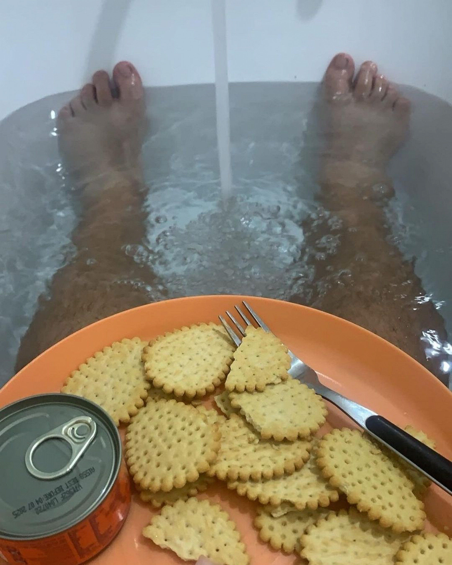 В инстаграм*-аккаунте Bath Foods уже более 19 тыс. подписчиков. Каждую неделю авторы выкладывают фотографии с трапезами в ванне, которые им присылают пользователи.