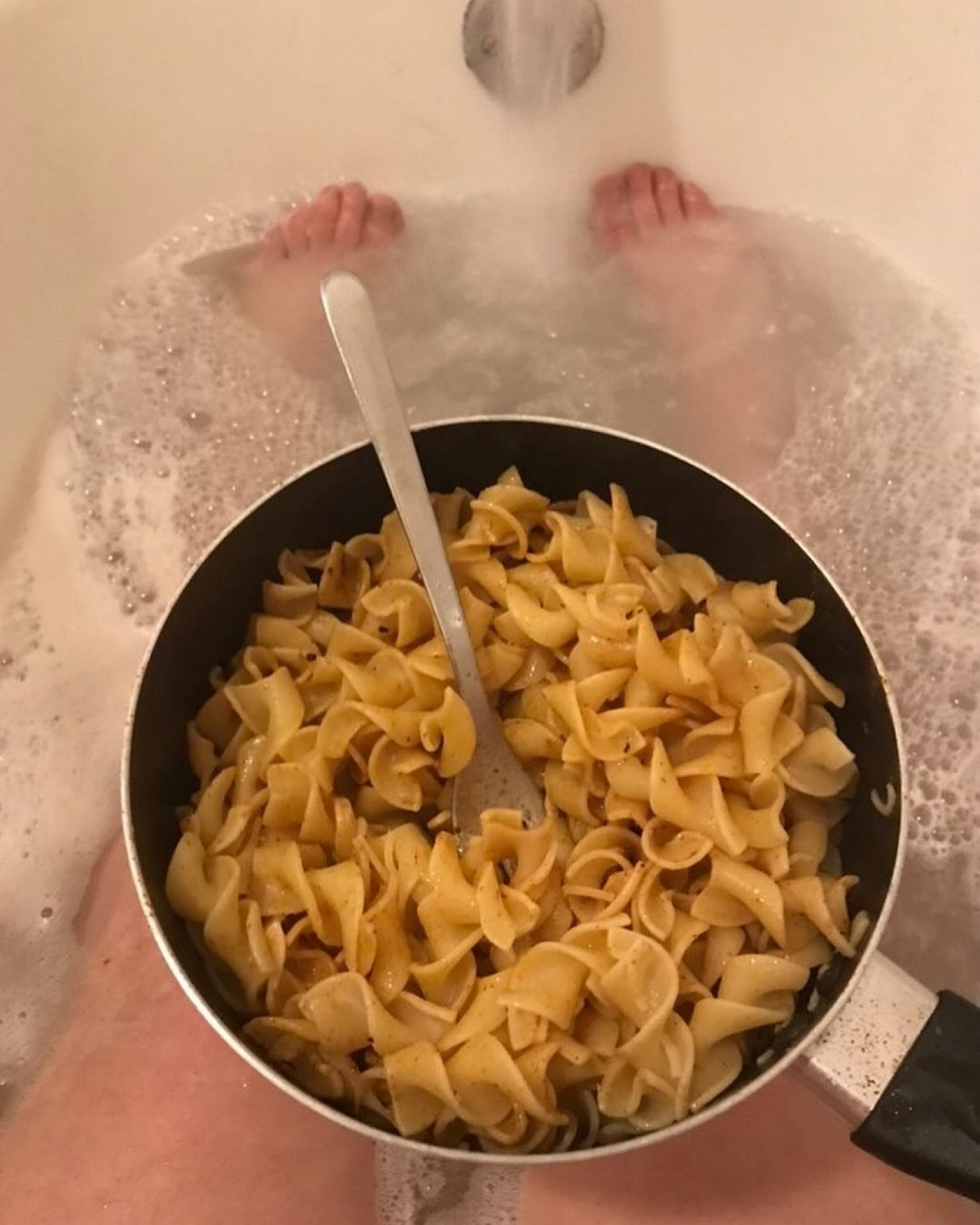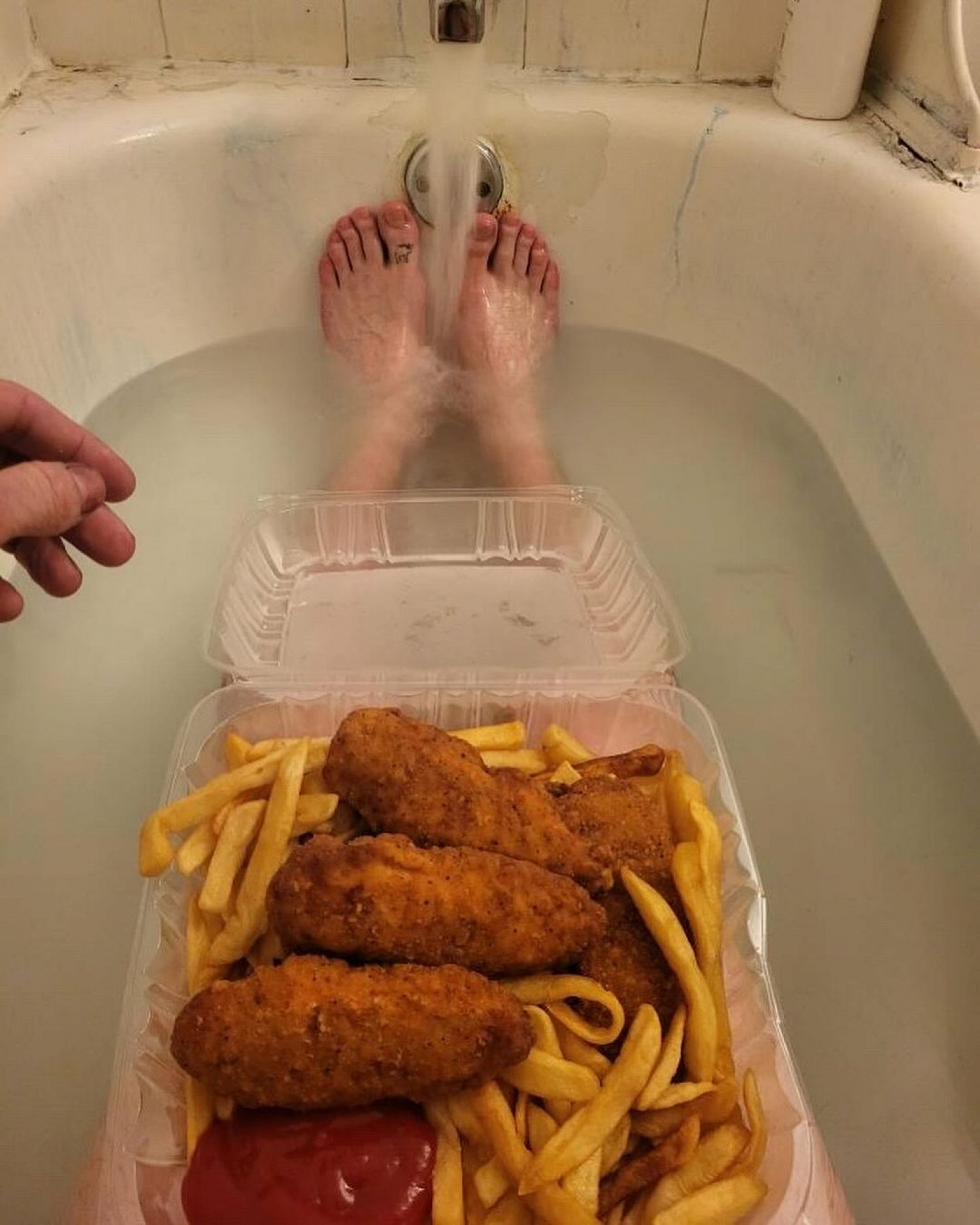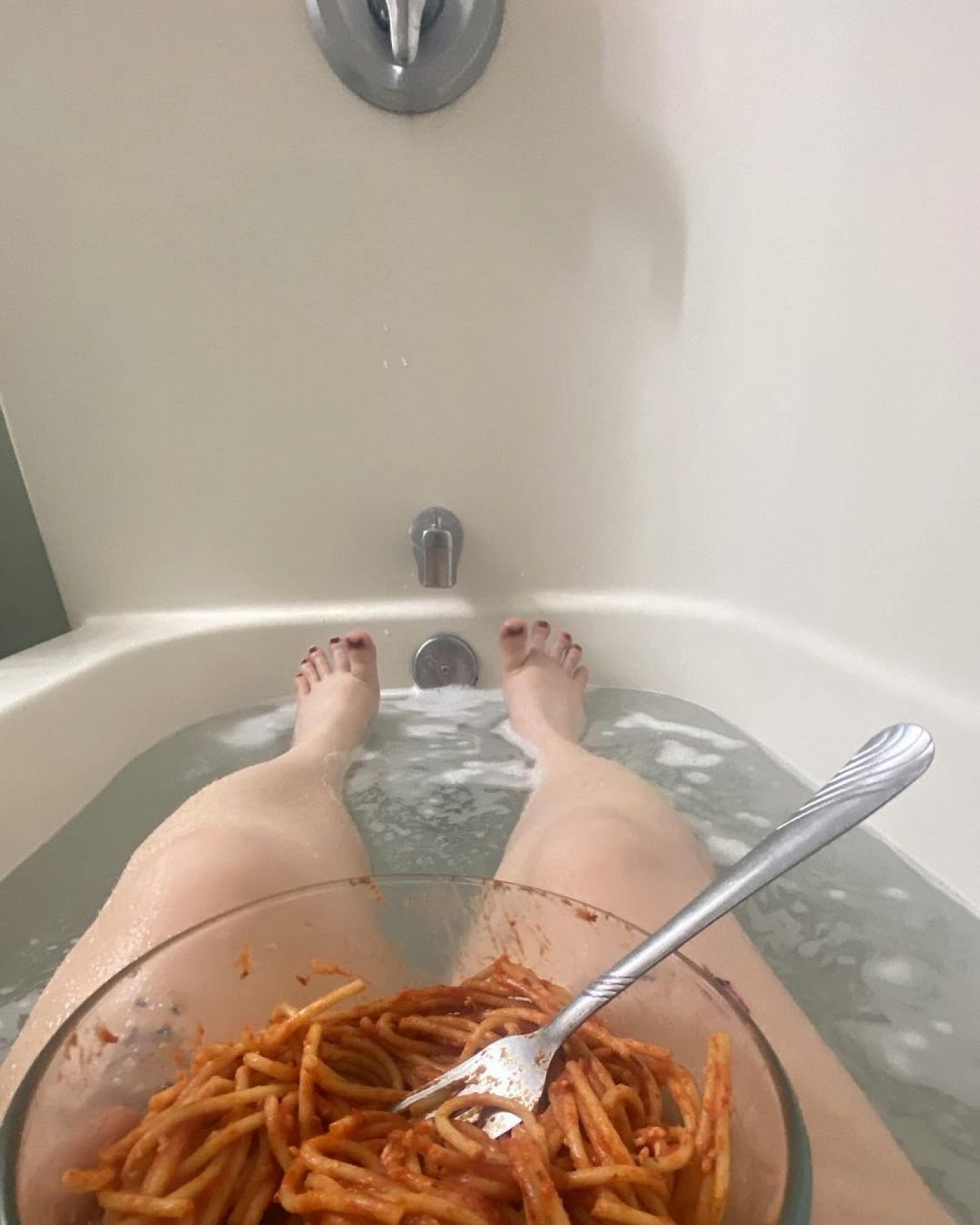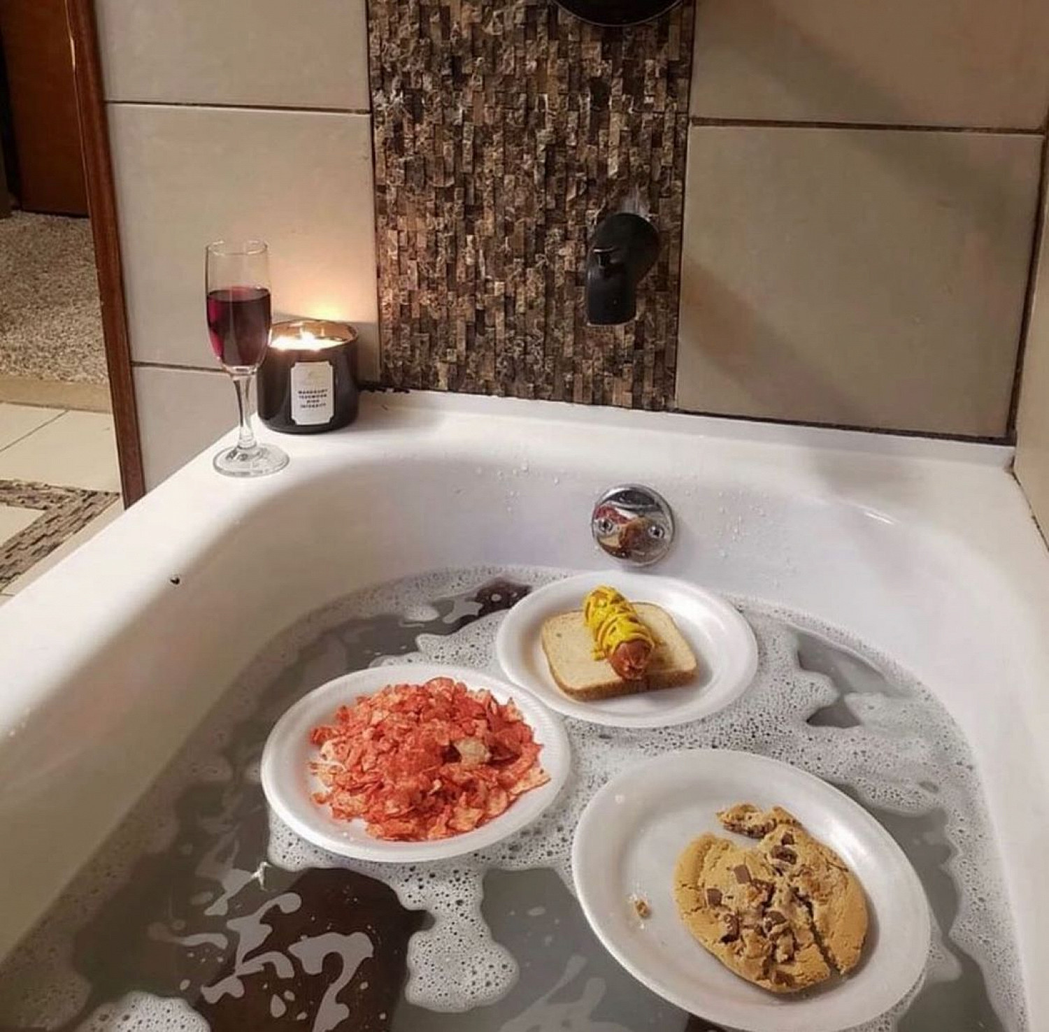 В инстаграм*-аккаунте Bath Foods уже более 19 тыс. подписчиков. Каждую неделю авторы выкладывают фотографии с трапезами в ванне, которые им присылают пользователи.