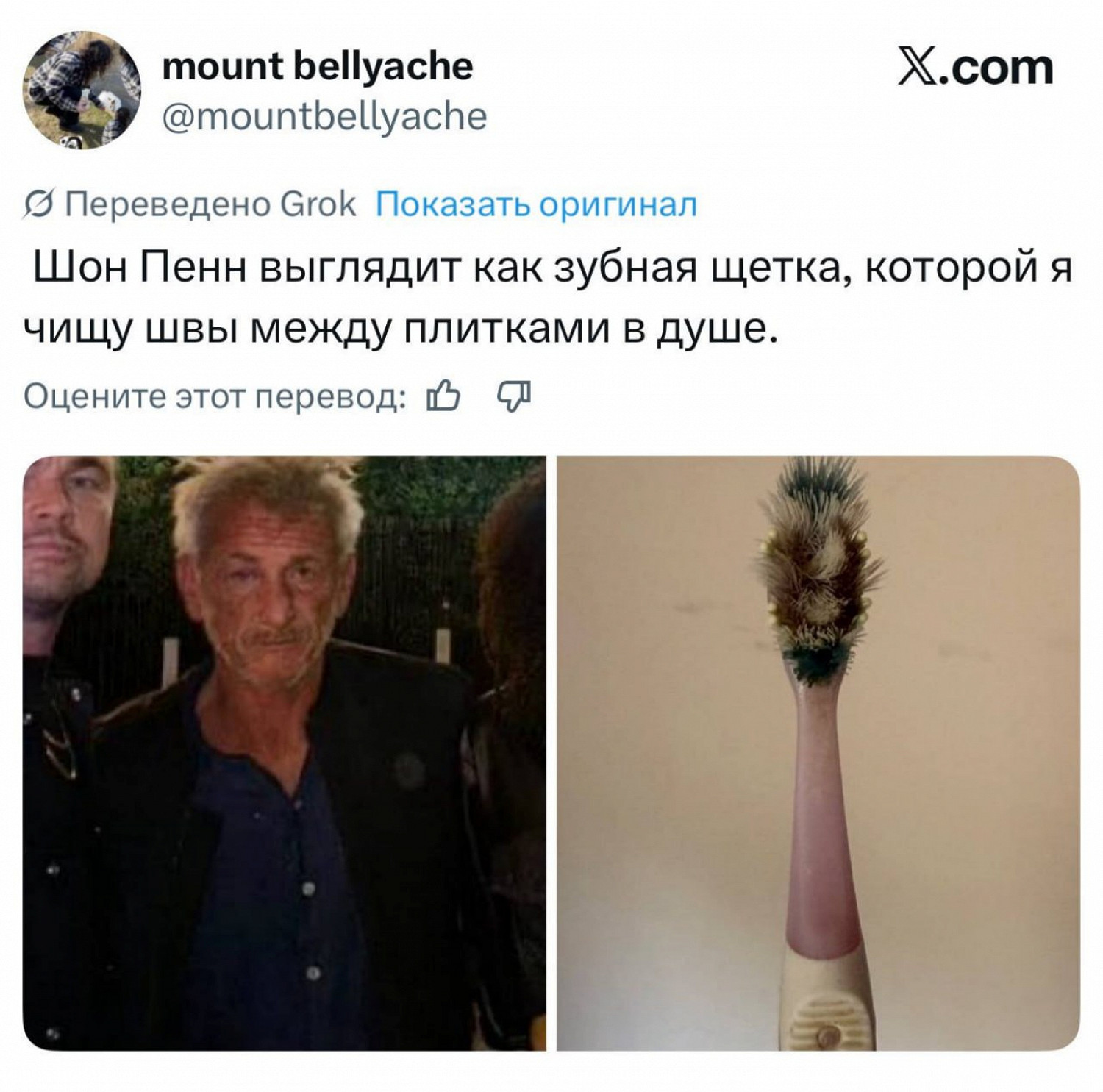 У актера было уставшее выражение лица и растрепанные волосы. Это заставило некоторых предположить, что за секунду до того, как был сделан снимок, перед лицом Пенна взорвалась петарда.
