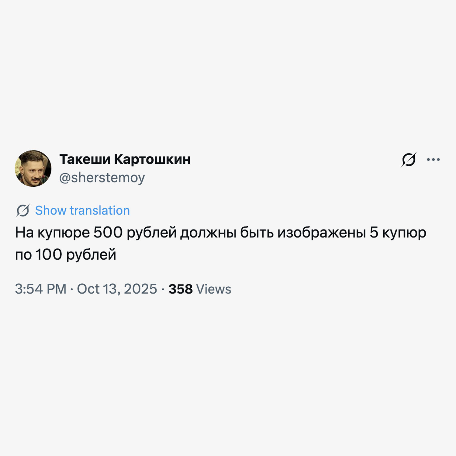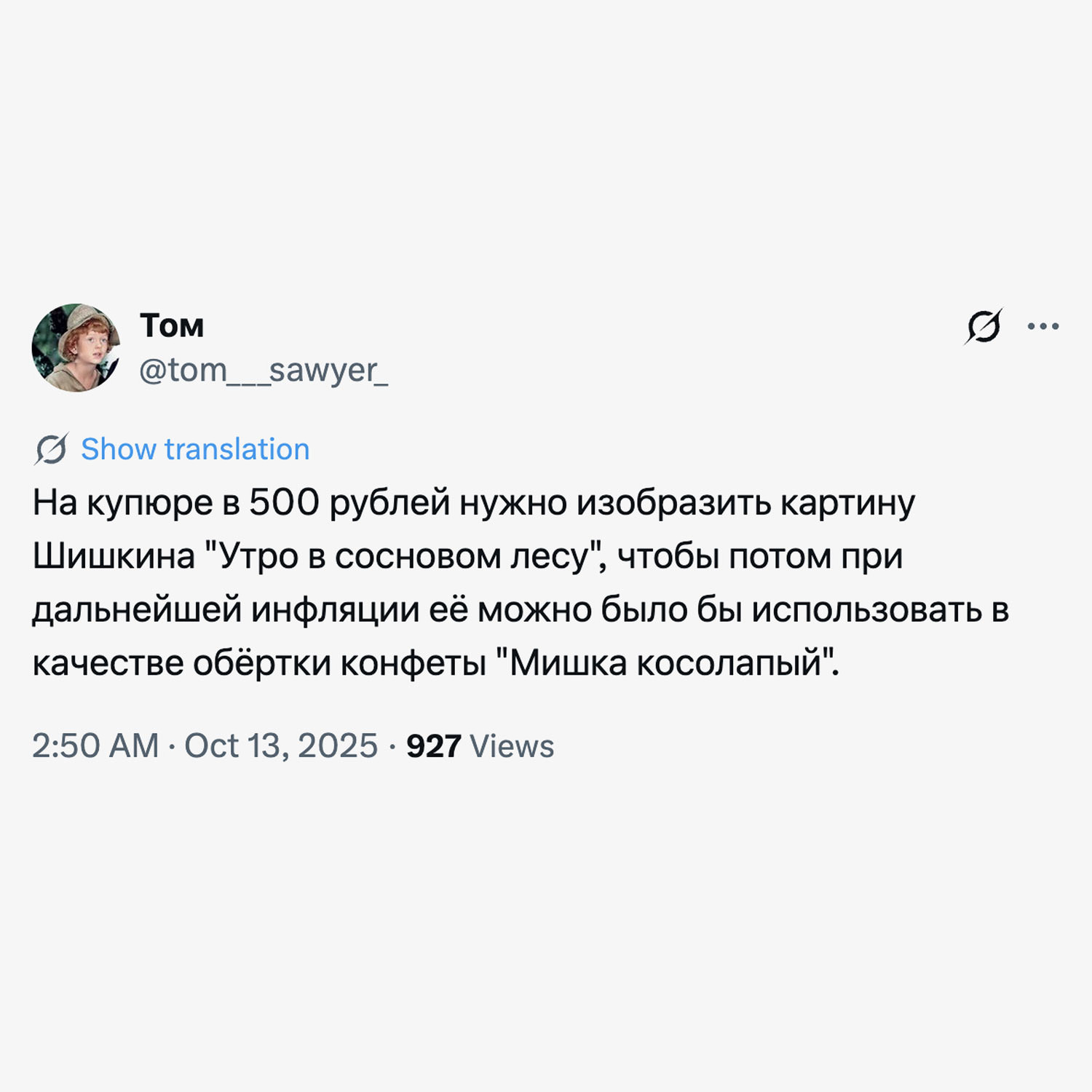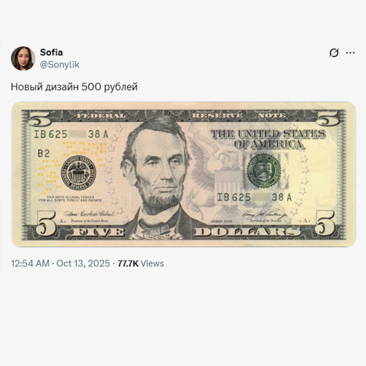 12 октября ЦБ досрочно остановил голосование — из-за «попыток техническими средствами увеличить количество голосов за некоторые объекты». Новые даты голосования пообещали предложить позже, а пока россияне иронизируют над сложившейся ситуацией и предлагают альтернативный дизайн купюры. Самая популярная шутка, что 500 рублей скоро сравняются с одним долларом.
