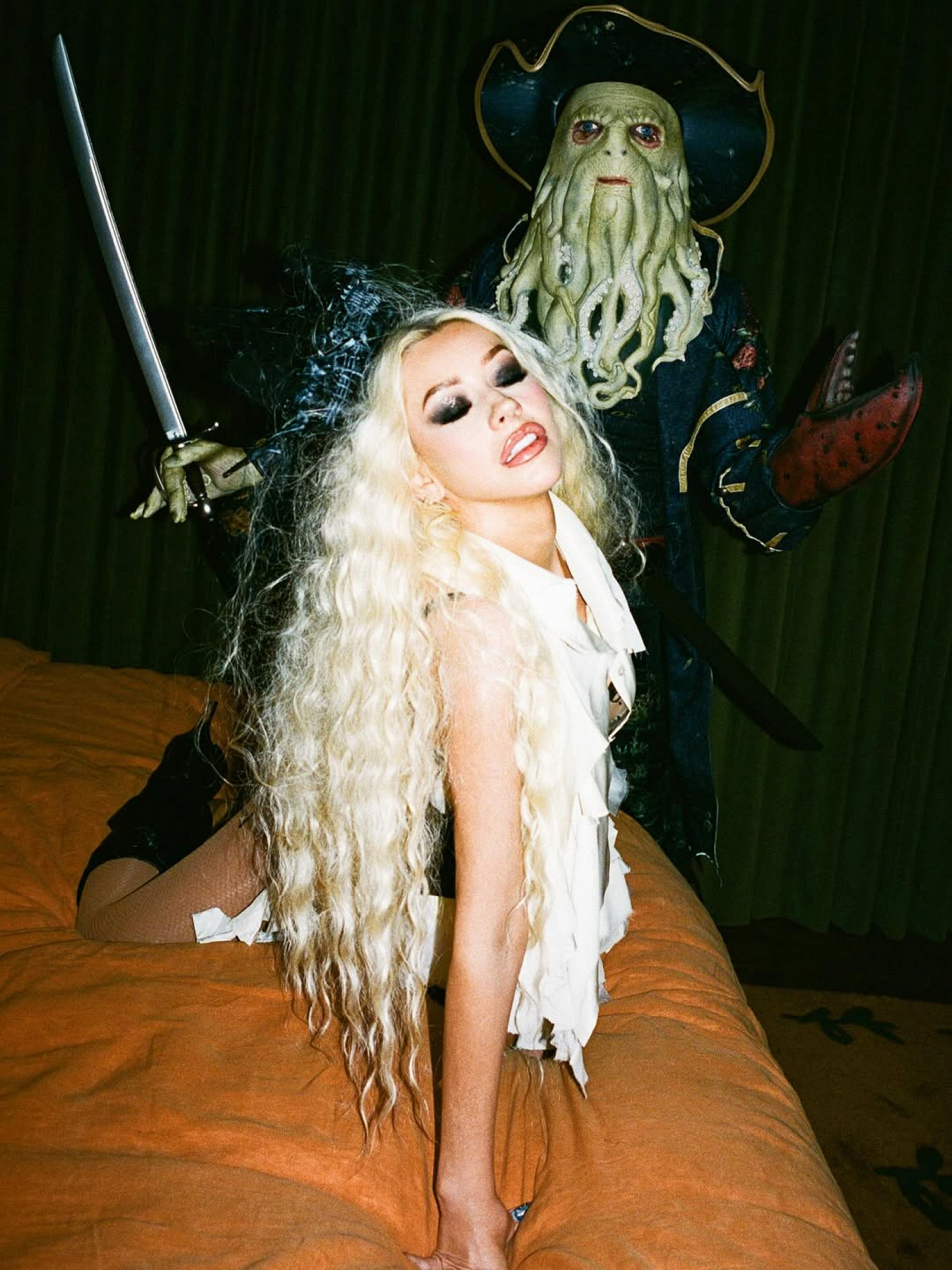 Певица выбрала образ потерпевшей кораблекрушение «Черной жемчужины» из «Пиратов Карибского моря». Главным акцентом стал головной убор в форме разбитого корабля, созданный дизайнером Крисом Хабаной.