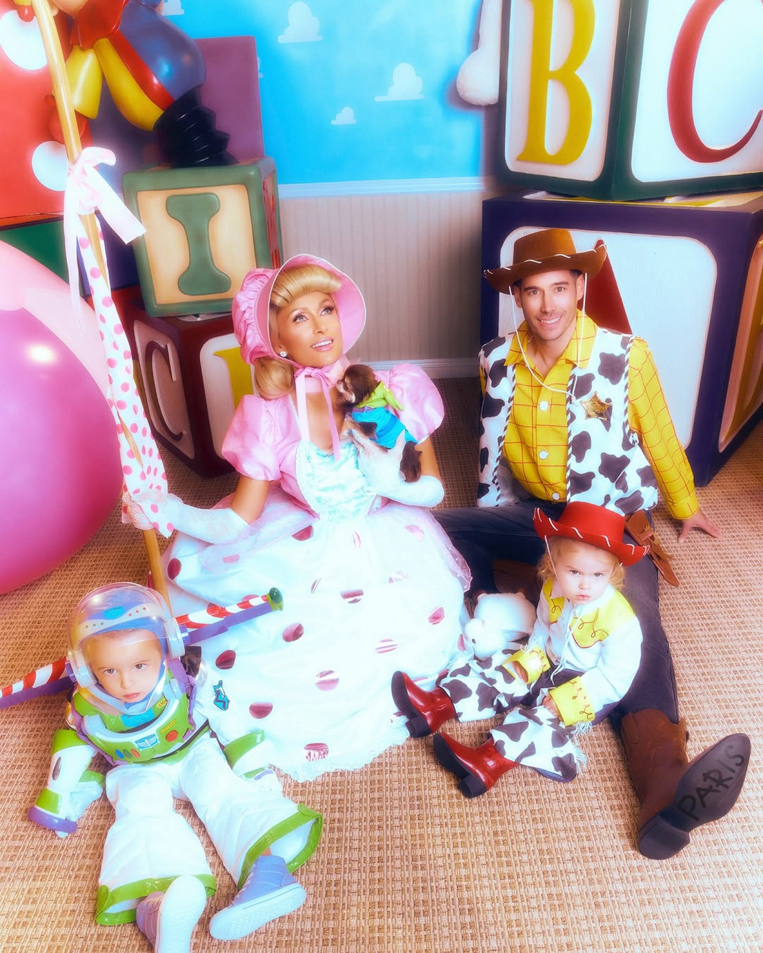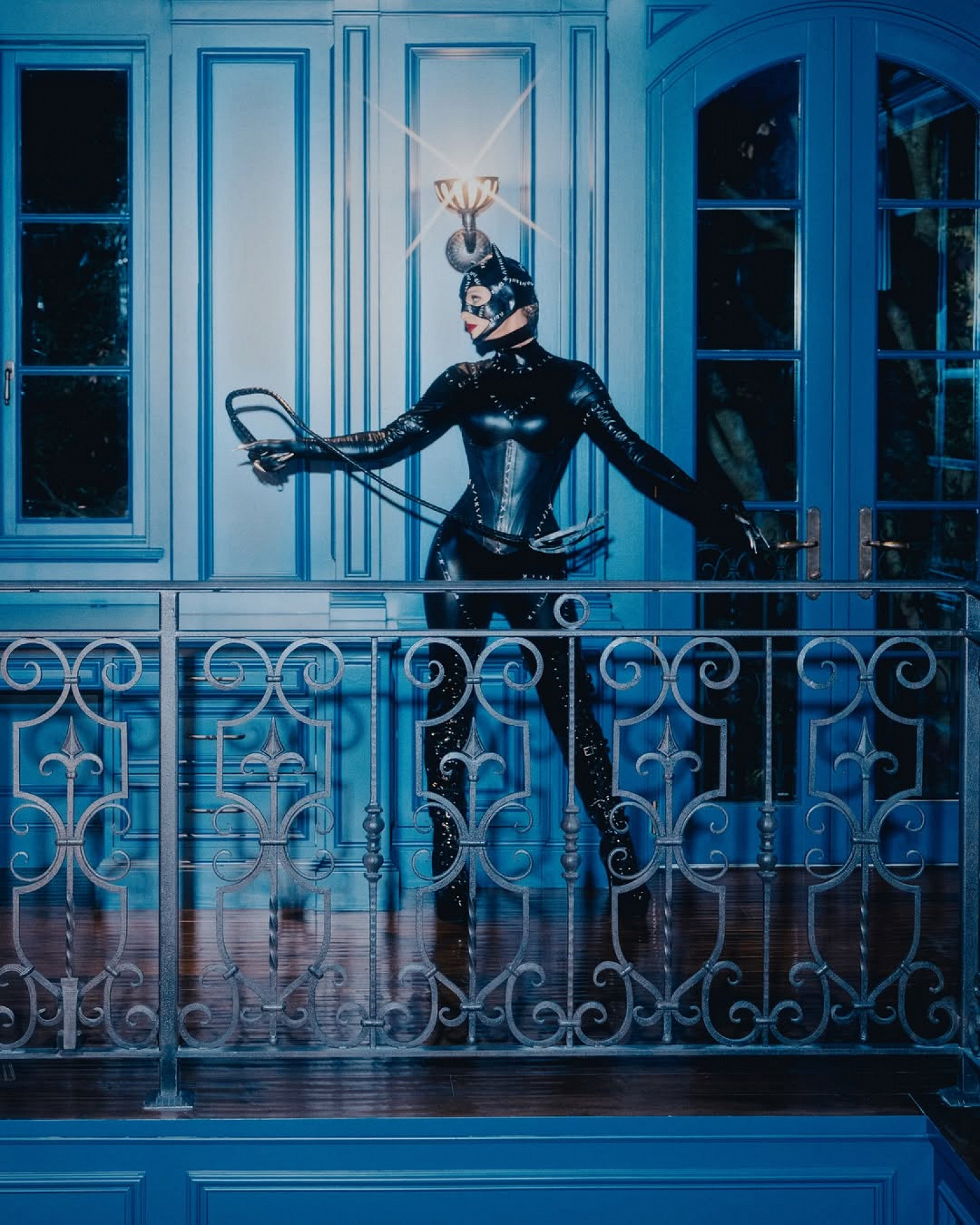 В этот Хэллоуин звезда примерила на себя множество образов. Вместе с мужем и двумя детьми она нарядилась в костюмы из «Истории игрушек», а сольно она выбрала образы Женщины-кошки из фильма Тима Бертона «Бэтмен возвращается» и Бритни Спирс из клипа «Oops!.. I Did It Again».