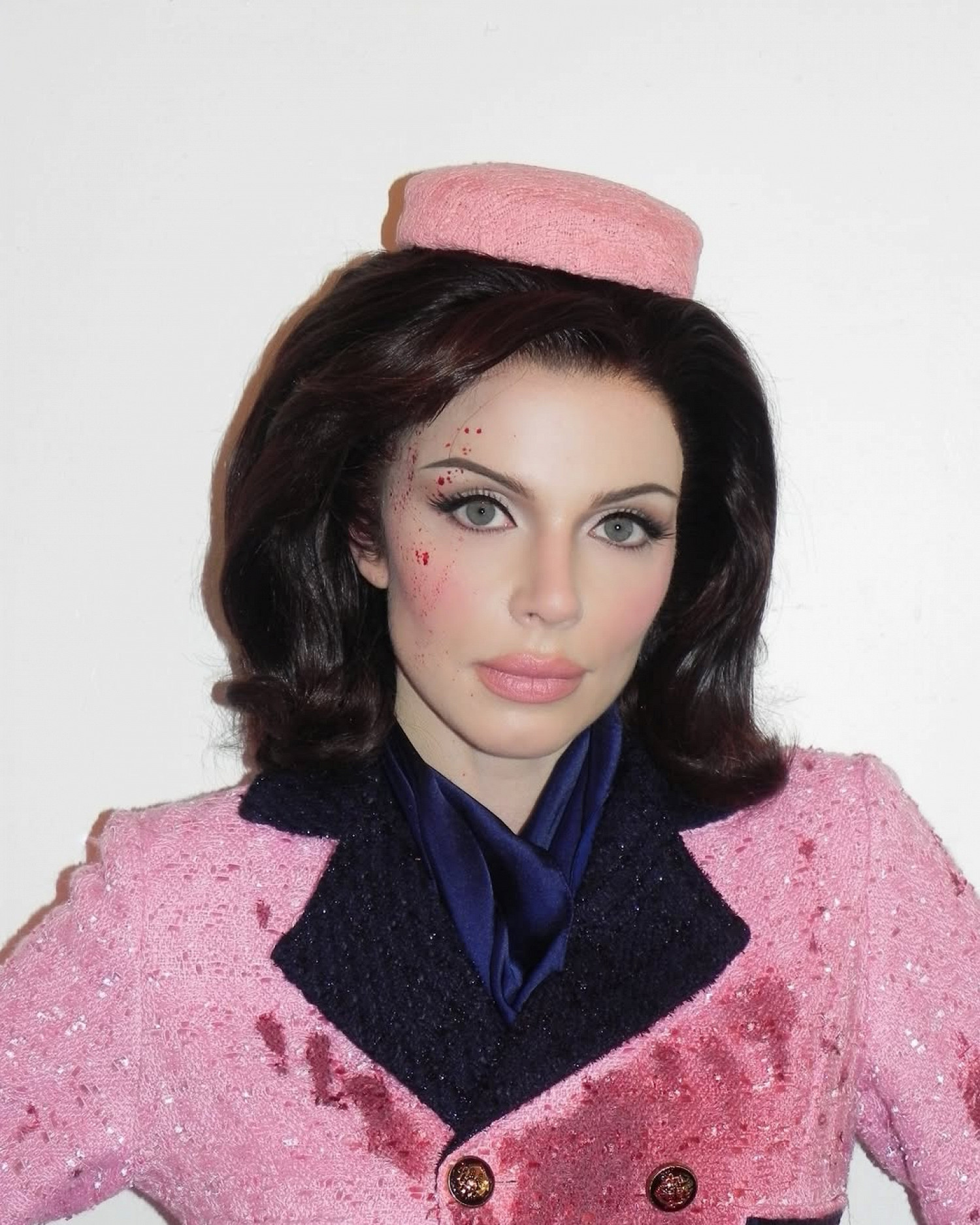 Актриса примерила на себя окровавленный костюм Джеки Кеннеди, который был на бывшей первой леди в день убийства ее мужа, президента Джона Ф.Кеннеди. Внук Джона и Жаклин Джек Шлоссберг назвал образ «отвратительным и прославляющим политическое насилие». При этом сама актриса ответила, что ее наряд — символ не насилия, а протеста против него.