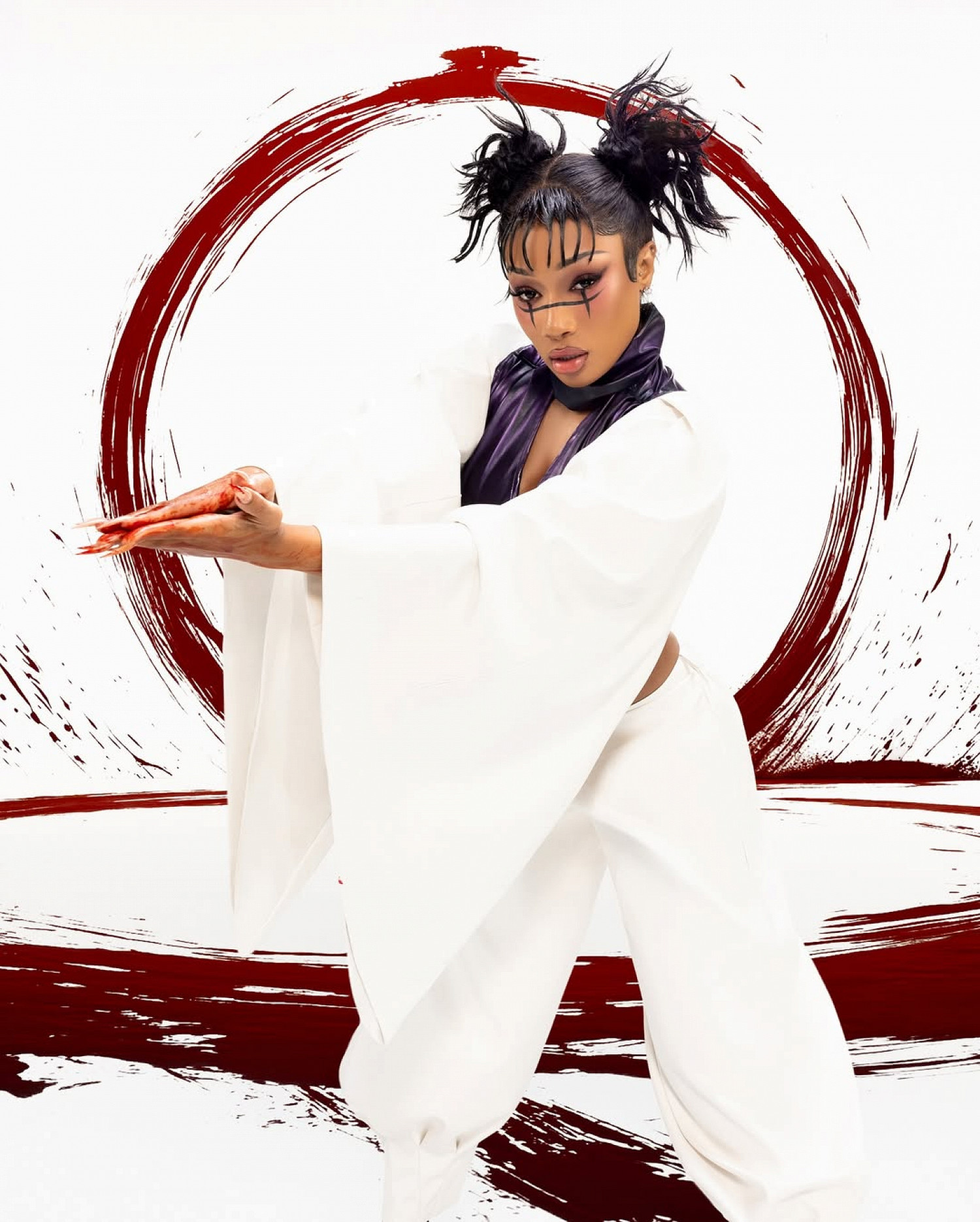 Известная любовью к аниме певица в этом году выбрала образ персонажа Чосо из манги «Дзюдзюцу Кайсэн». Она воссоздала внешность героя (бывшего злодея, ставшего союзником).