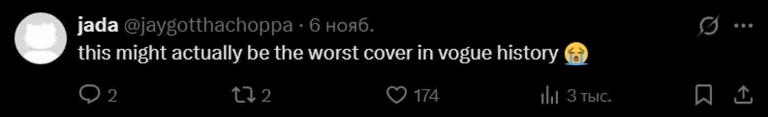 Редакция Vogue, в которой недавно произошли глобальные изменения, не прокомментировала спорную обложку. Пока журнал еще не вышел в продажу (релиз запланирован на 18 ноября), его поклонники надеются, что редакторы пошутили.
