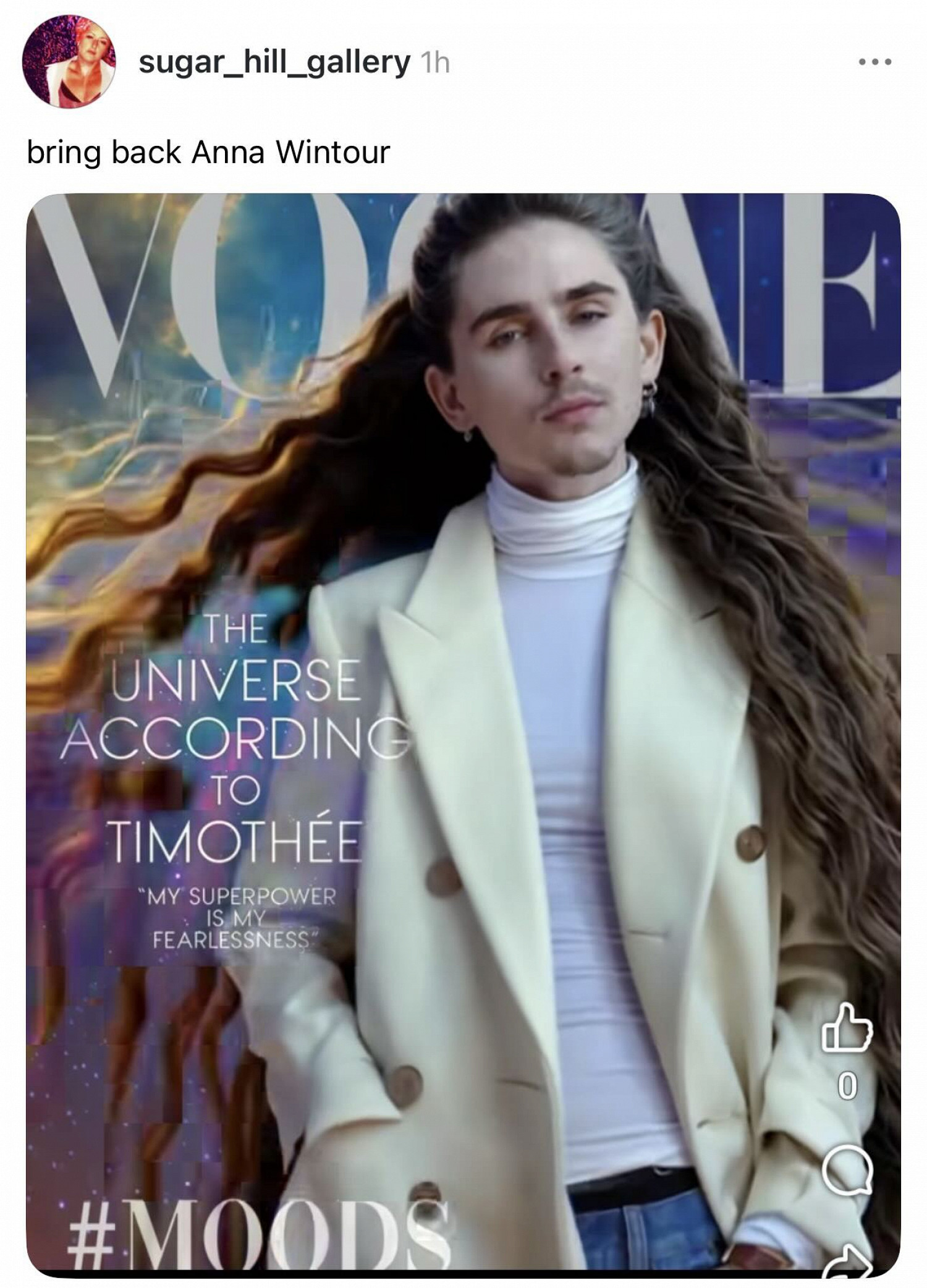 Некоторые фэшн-энтузиасты попытались спасти ситуацию и исправить обложку. Правда, другие снимки из фотосессии Шаламе для Vogue смутили пользователей не меньше заглавного.