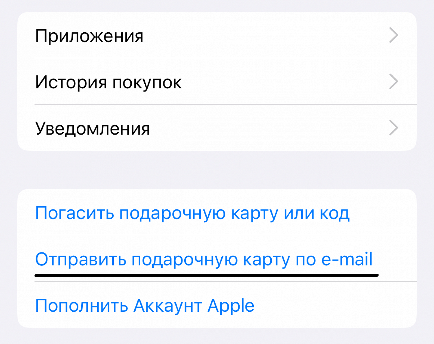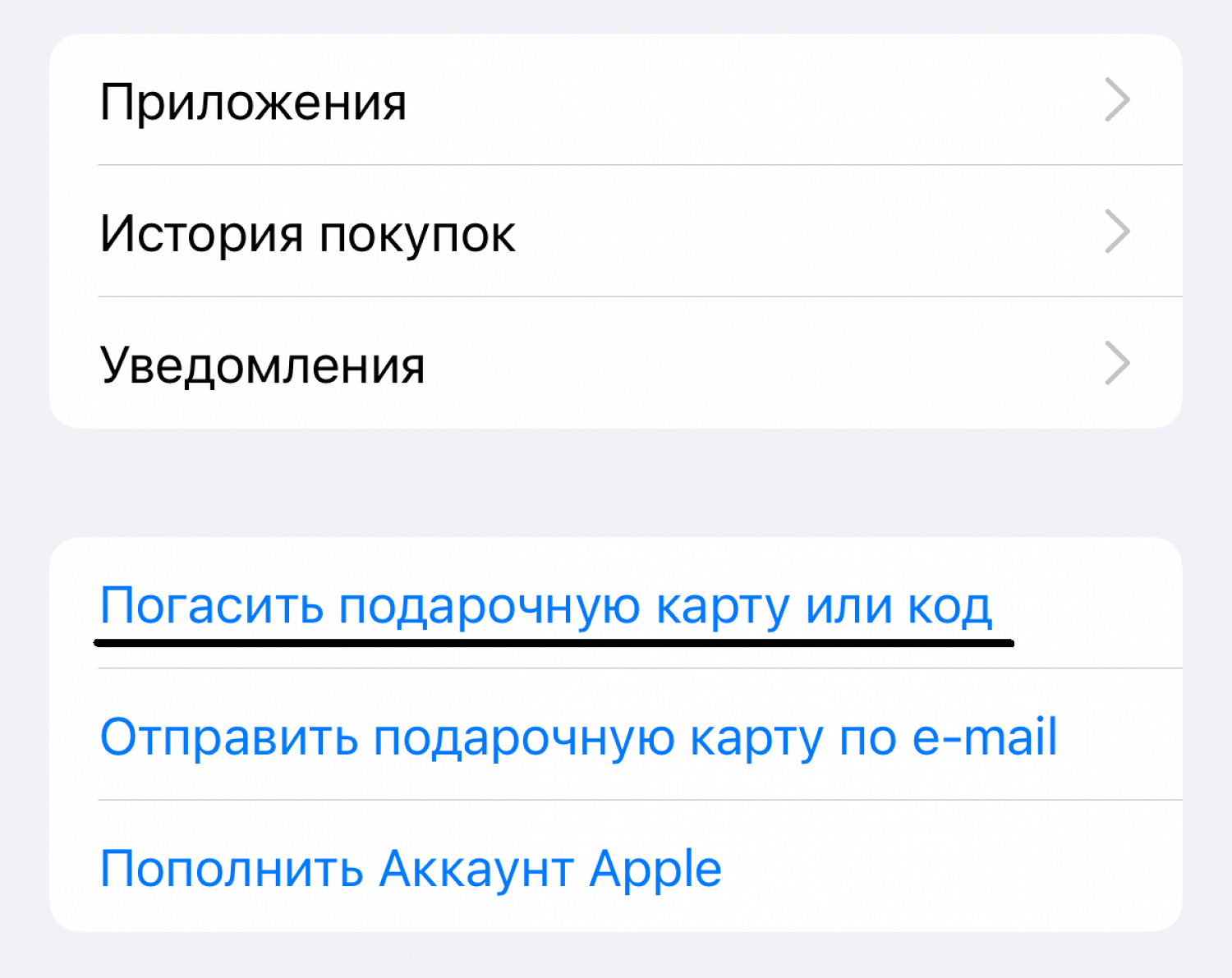 8. После оплаты на почту придет код подарочной карты Apple — его нужно добавить в учетной записи в App Store.