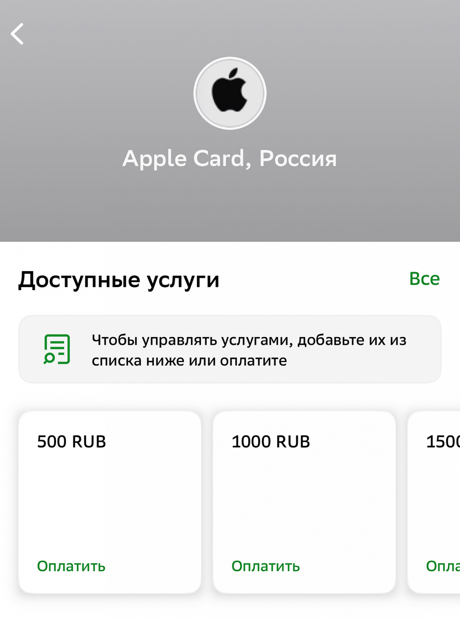 3. Выберите раздел «Отдых и развлечения», затем «Apple Card, Россия».