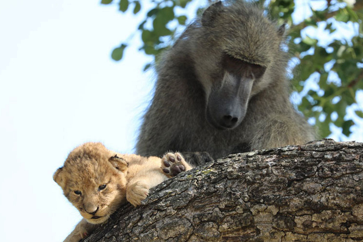 Африканский фотограф снял, как бабуин несет львенка. Точь-в-точь как в «Короле Льве»!