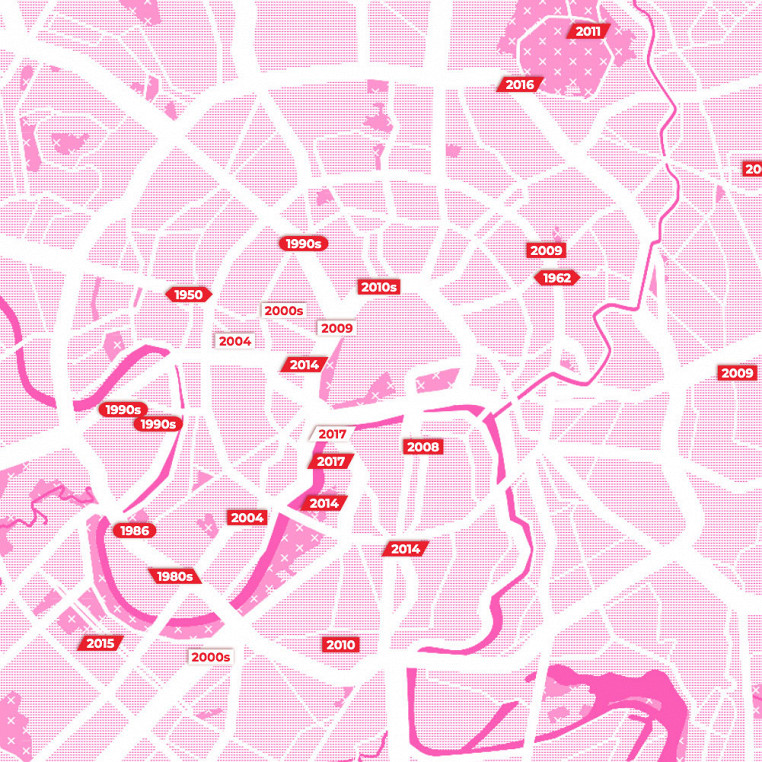 Пицца и похотливый огурец: посмотрите на карту первых свиданий Москвы с 1950-х по 2010-е