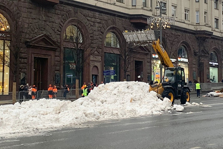 В центр Москвы привезли искусственный снег. В твиттере посыпались шутки