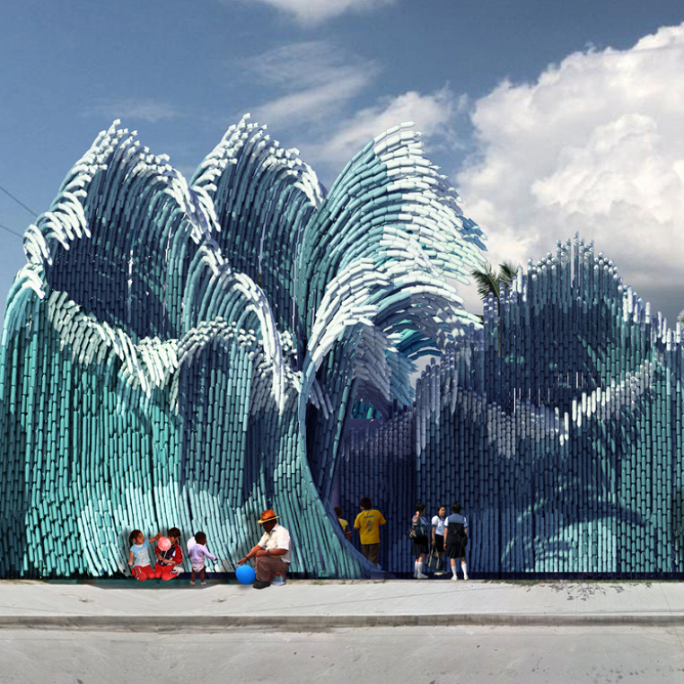 Посмотрите на «Новую волну» — концепт школы в Мексике с фасадом из пластиковых бутылок