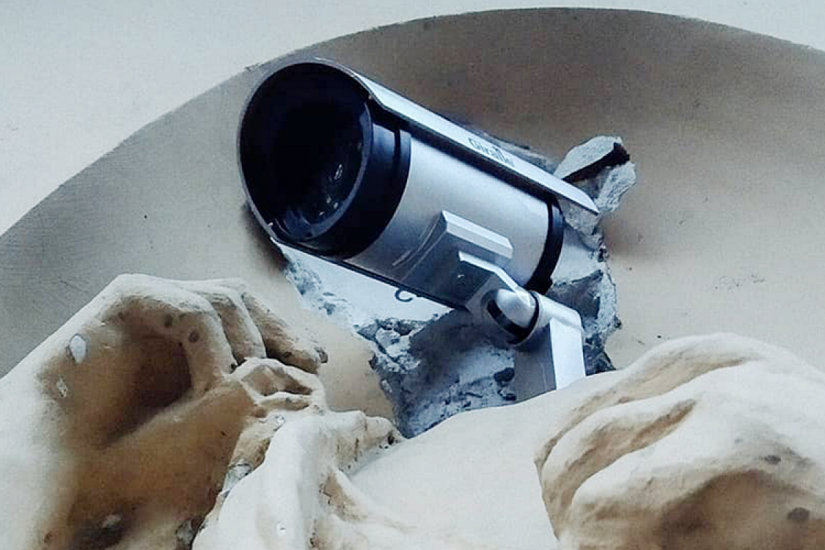 В Петербурге появилась инсталляция «Пугало». Это CCTV-камера на месте головы статуи