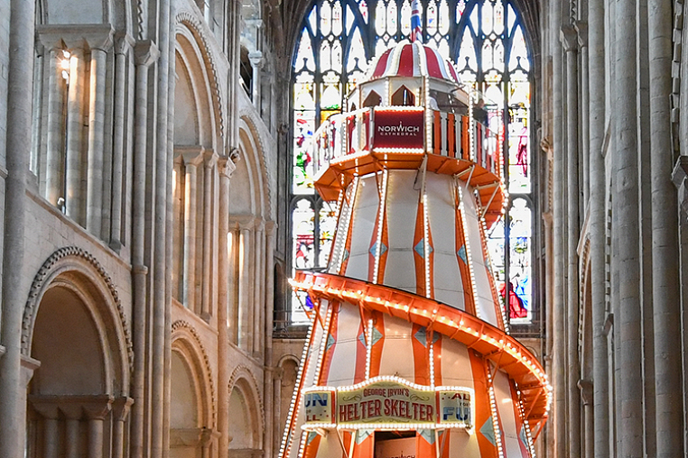 В английском соборе установили ярмарочную горку, чтобы рассматривать расписные своды