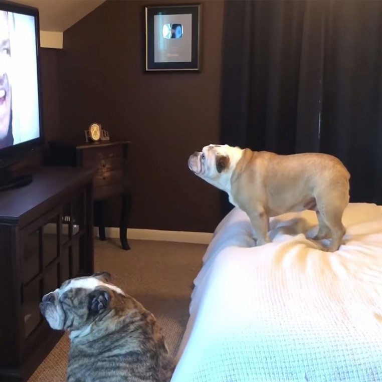 Наши новые любимые реакции на YouTube: два бульдога смотрят трейлеры фильмов