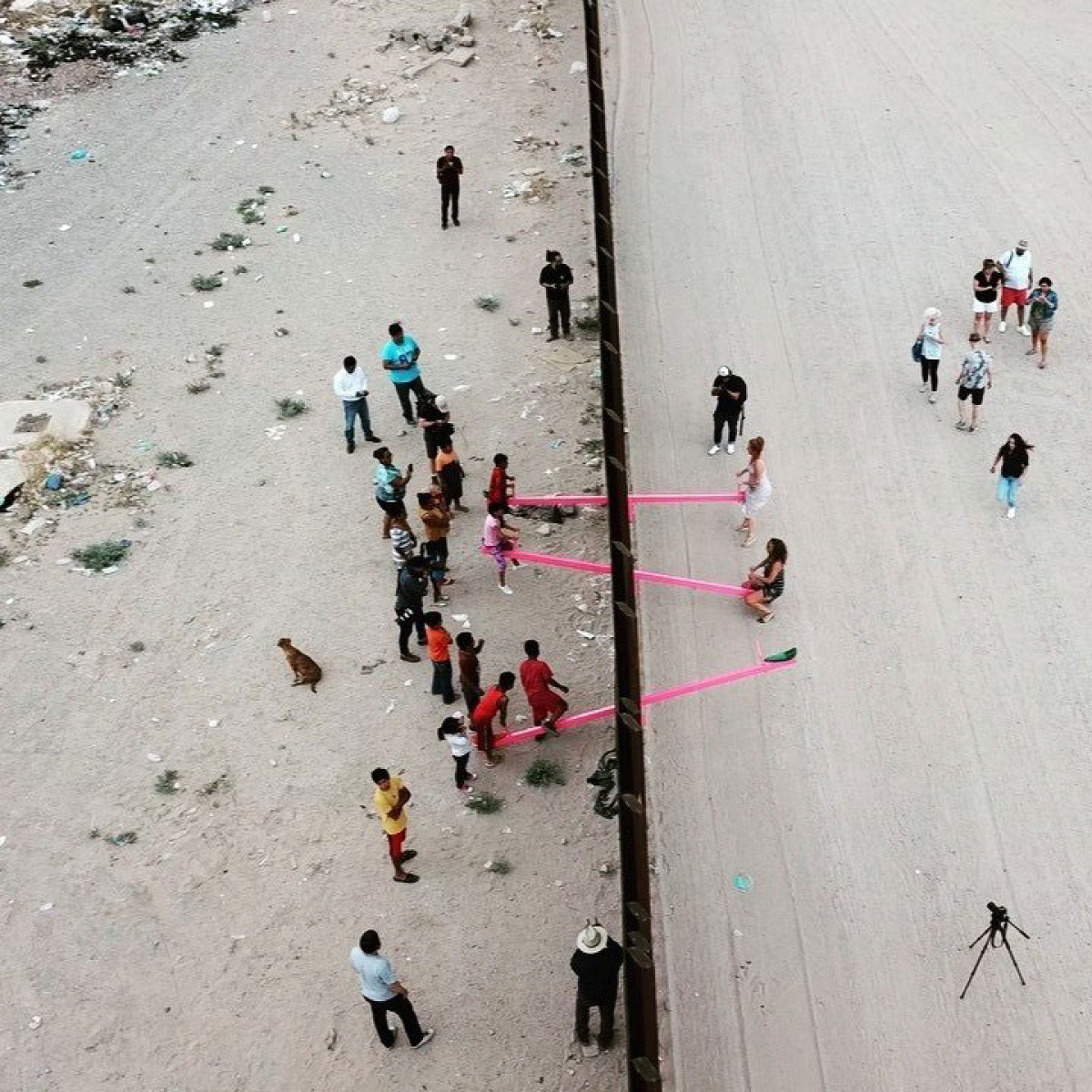На границе США и Мексики появились розовые качели. Они символизируют связь между странами