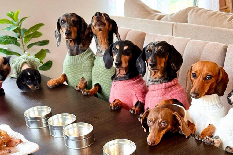 Скучно не будет ни секунды: каково жить с восемью таксами и котом в одном доме