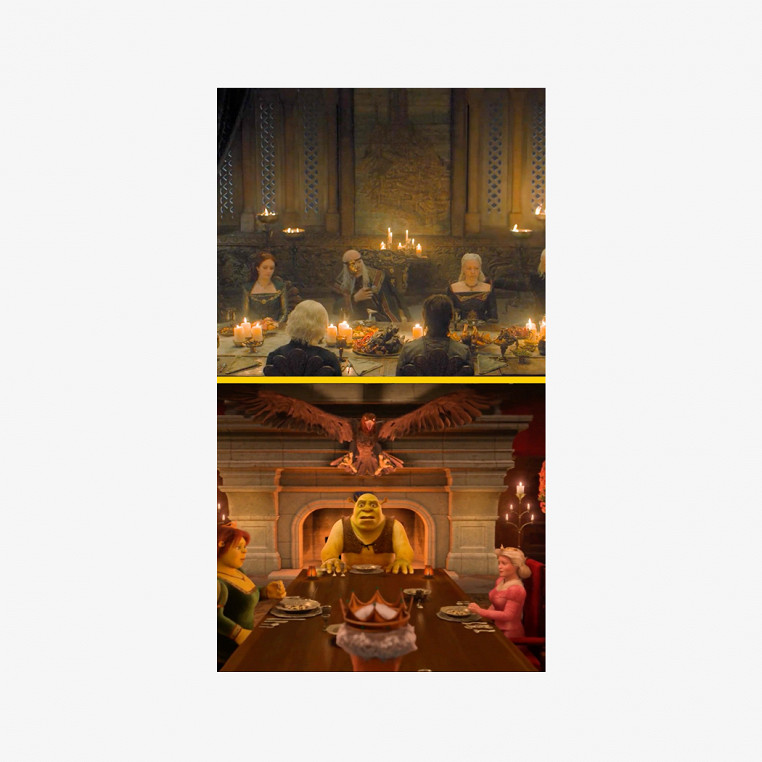 Зелено-золотые платья, драконы и ужин при свечах: что общего у «Дома дракона» и «Шрэка»