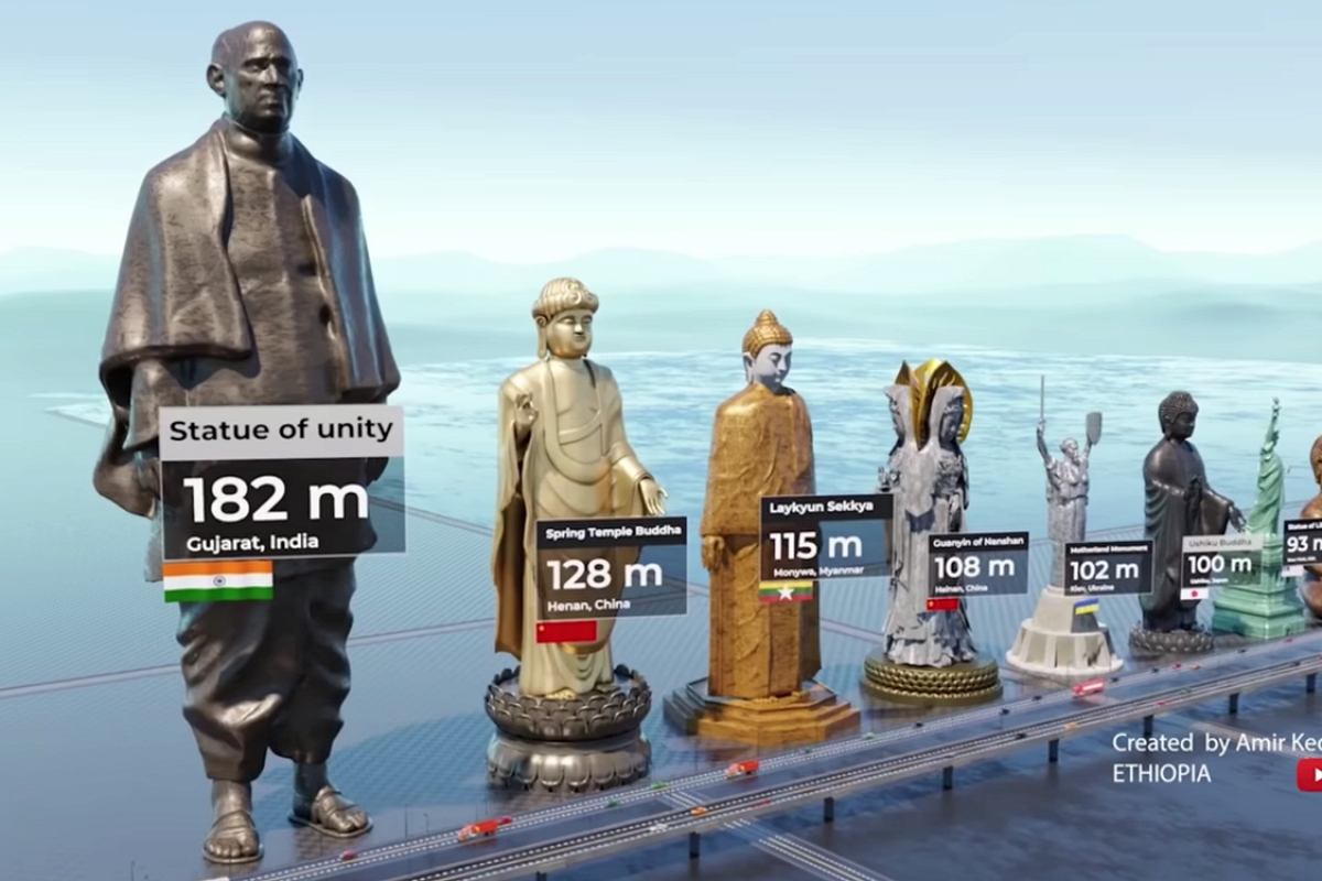 Что выше — статуя Свободы или скульптура «Родина-мать»? Показывает 3D-аниматор
