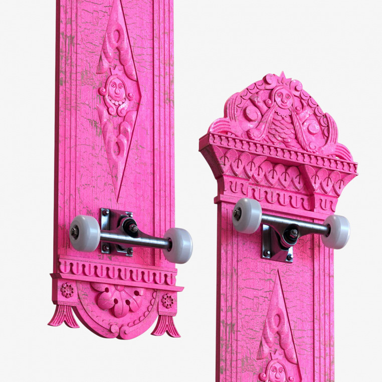 Надо поле обкатать: как выглядит скейтборд, вдохновленный сибирскими наличниками