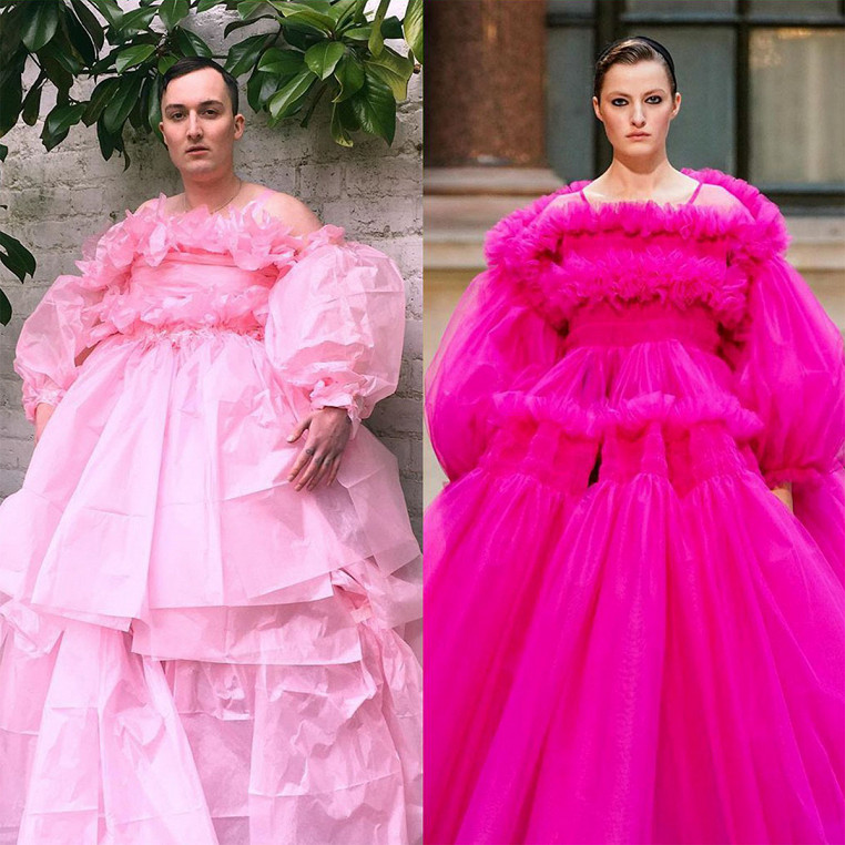 Домашний фешен: в инстаграме воссоздают кутюрные луки подручными средствами