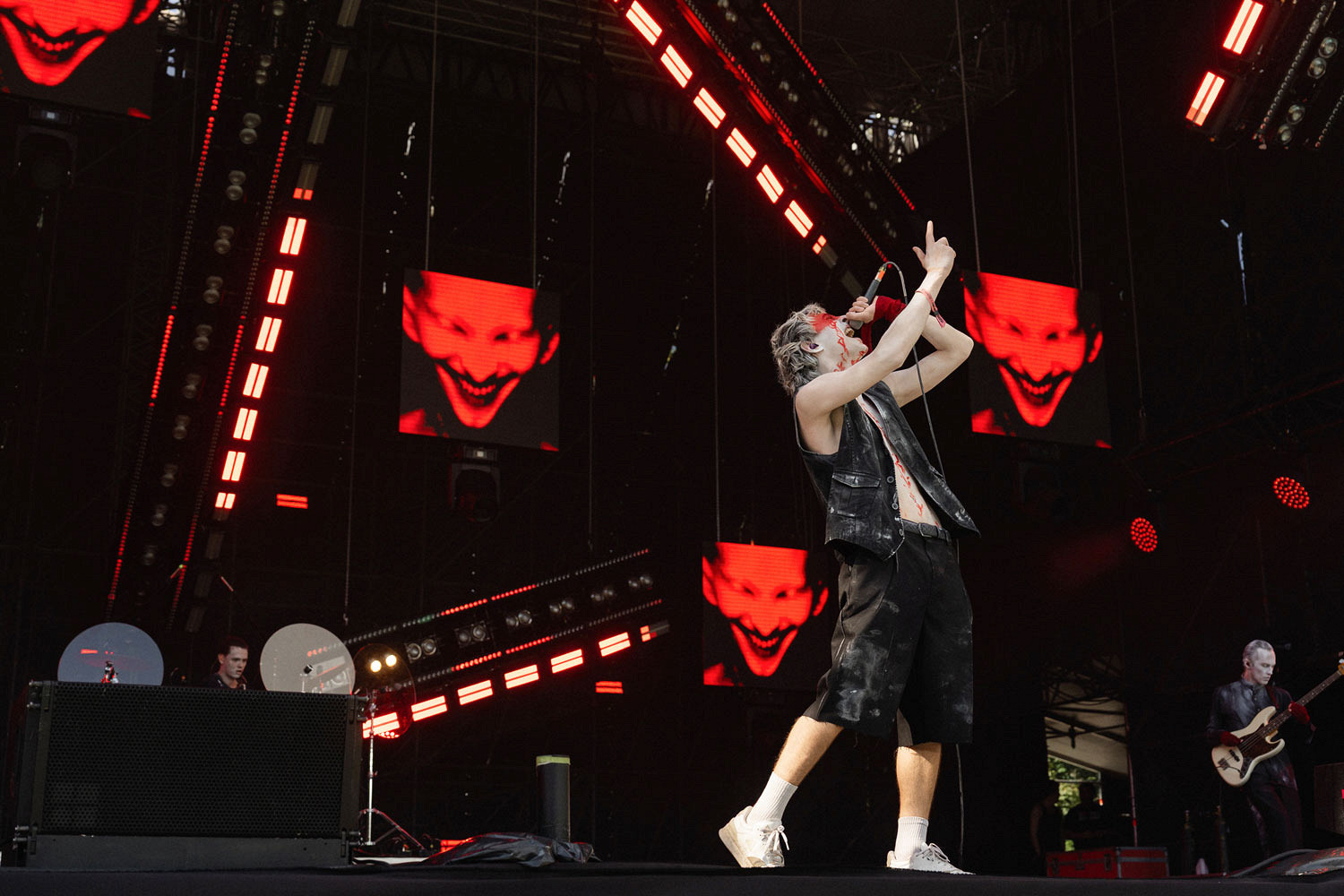 Пока мы готовились к выступлению, на главной сцене (до которой было как рукой подать), играла группа Uncle Pecos — одна из самых интересных рок-групп двадцатых. Если бы можно было описать их творчество одной фразой, то это было бы так: театралы, выросшие на хип-хопе, захотели играть рок-музыку. Представьте себе стоунер-рок и флоу Скриптонита — вот так они и звучат. В Петербурге Uncle Pecos предстояло открыть главную сцену — и разогреть людей, которые приехали раньше всех. С обеими задачами группа справилась: публика у сцены прыгала и даже слэмилась, — короче, ждем ребят на сетах уже попозже.