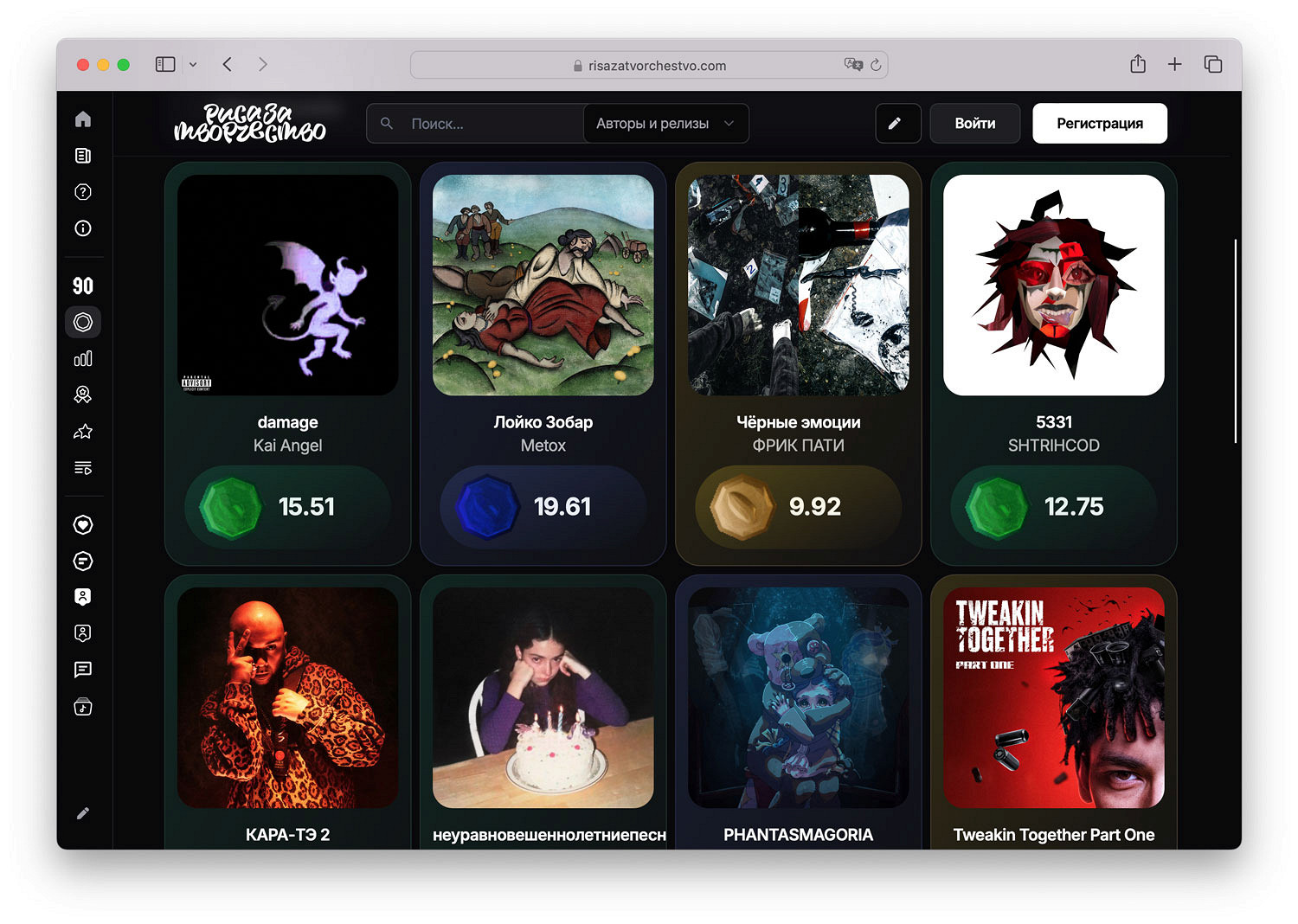 Если на стримах релизы оценивает сам Фломастер, то на сайте «Рисы за творчество» свои рецензии могут оставлять и пользователи. По их оценкам формируется рейтинг на сайте, где есть собственный топ лучших новинок месяца и главных альбомов момента (для них есть отдельная шкала оценивания «ценности альбома»).
