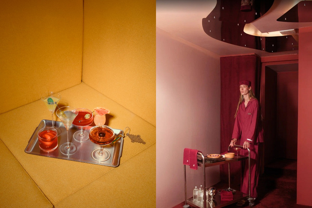 Планировка помещения напомнила структуру отеля и стала основой концепции: приватные комнаты превратились в «номера», общий зал — в лобби, а в фойе объединились бар и стойка ресепшн.