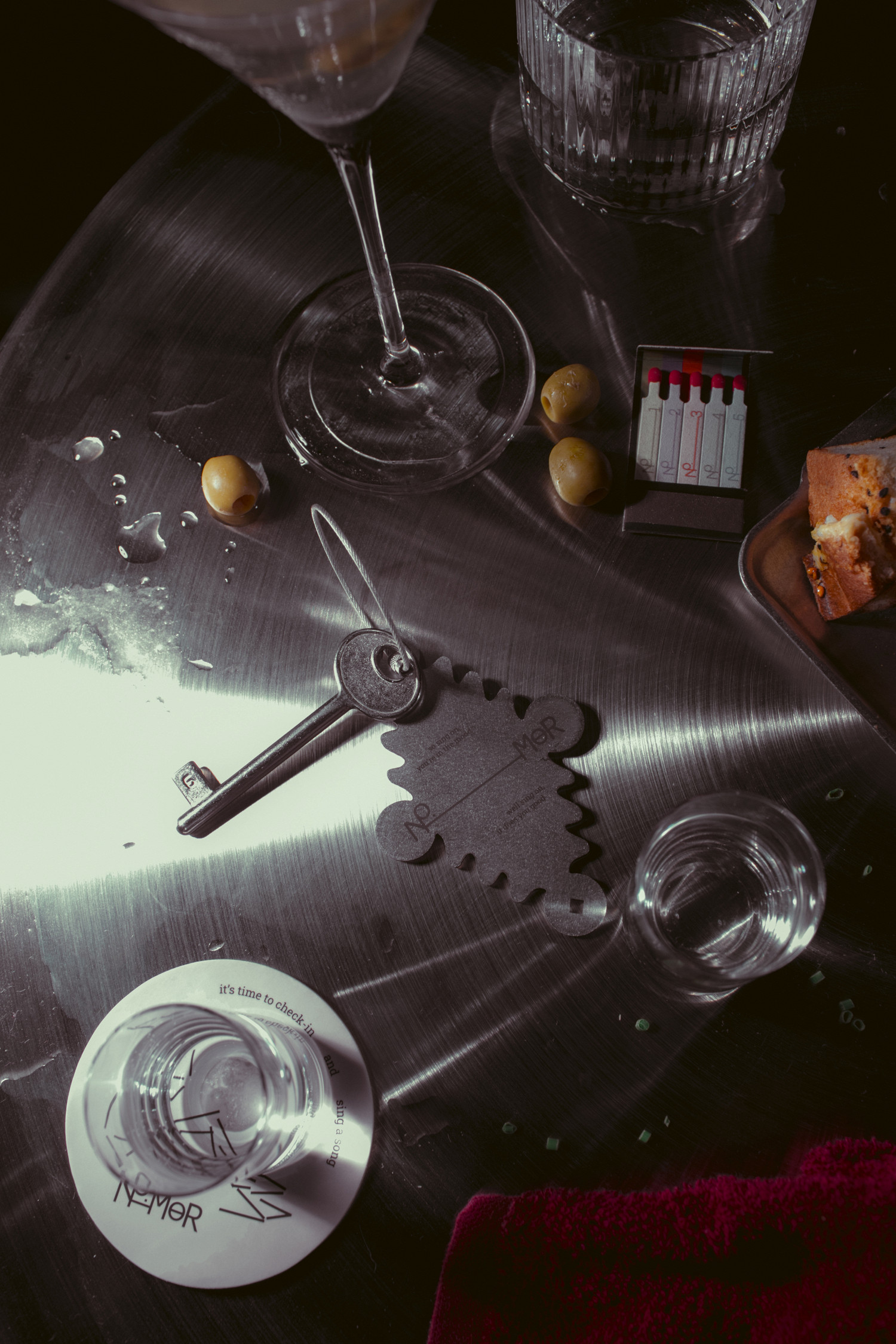 Планировка помещения напомнила структуру отеля и стала основой концепции: приватные комнаты превратились в «номера», общий зал — в лобби, а в фойе объединились бар и стойка ресепшн.