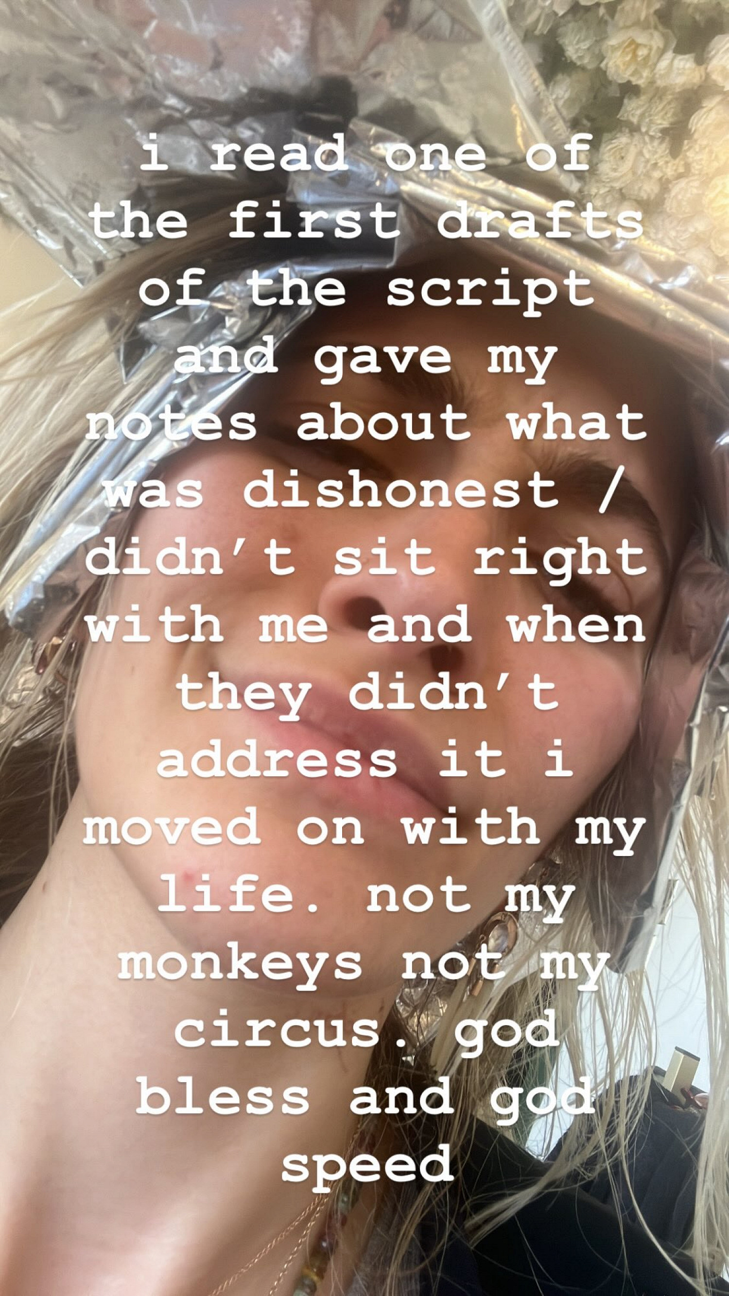 Она отметила, что прочитала первые наброски сценария и передала свои заметки о том, что было нечестным или не нравилось ей. «Когда их не учли, я продолжила жить свою жизнь. Не мои обезьяны, не мой цирк», — добавила дочь Короля поп-музыки.