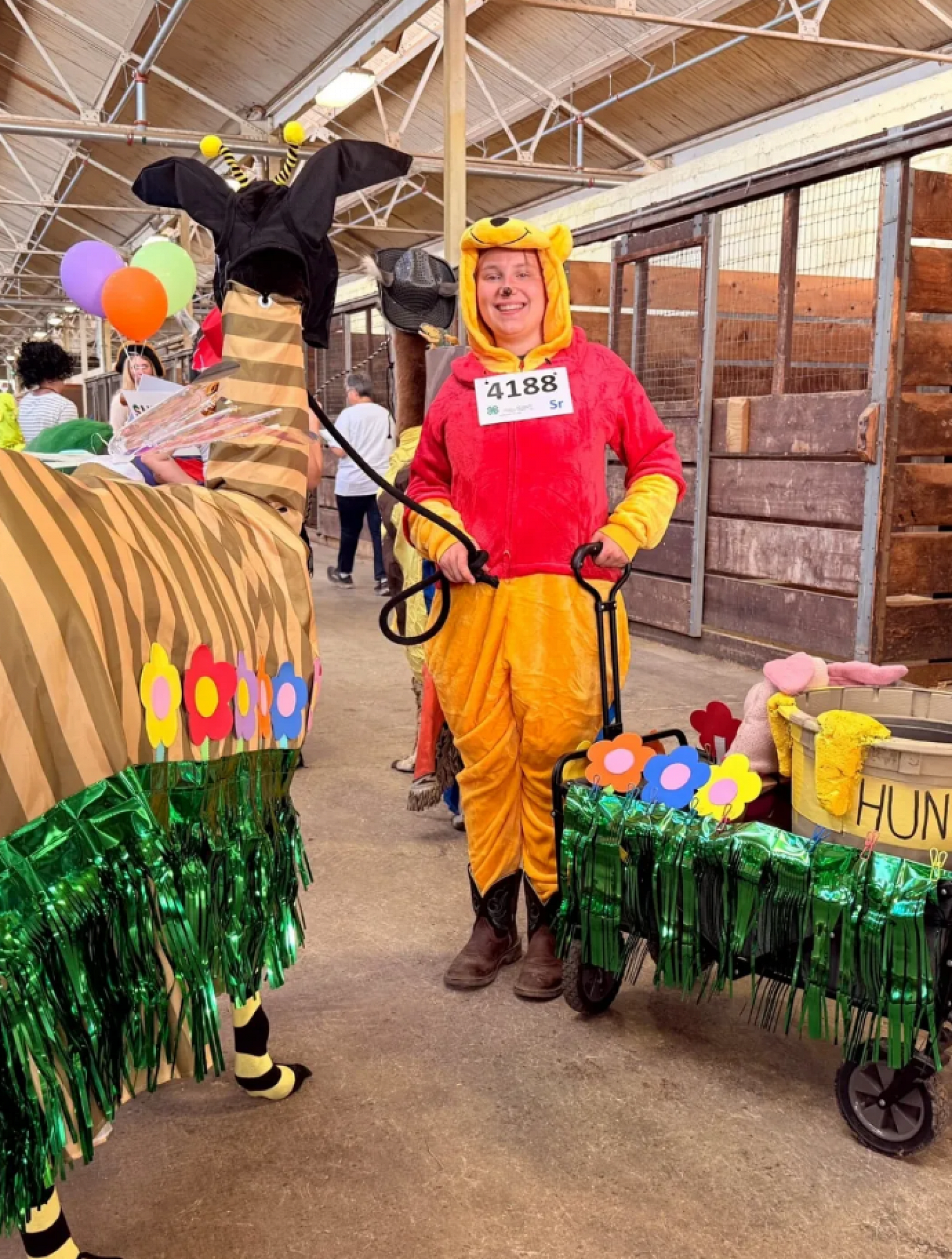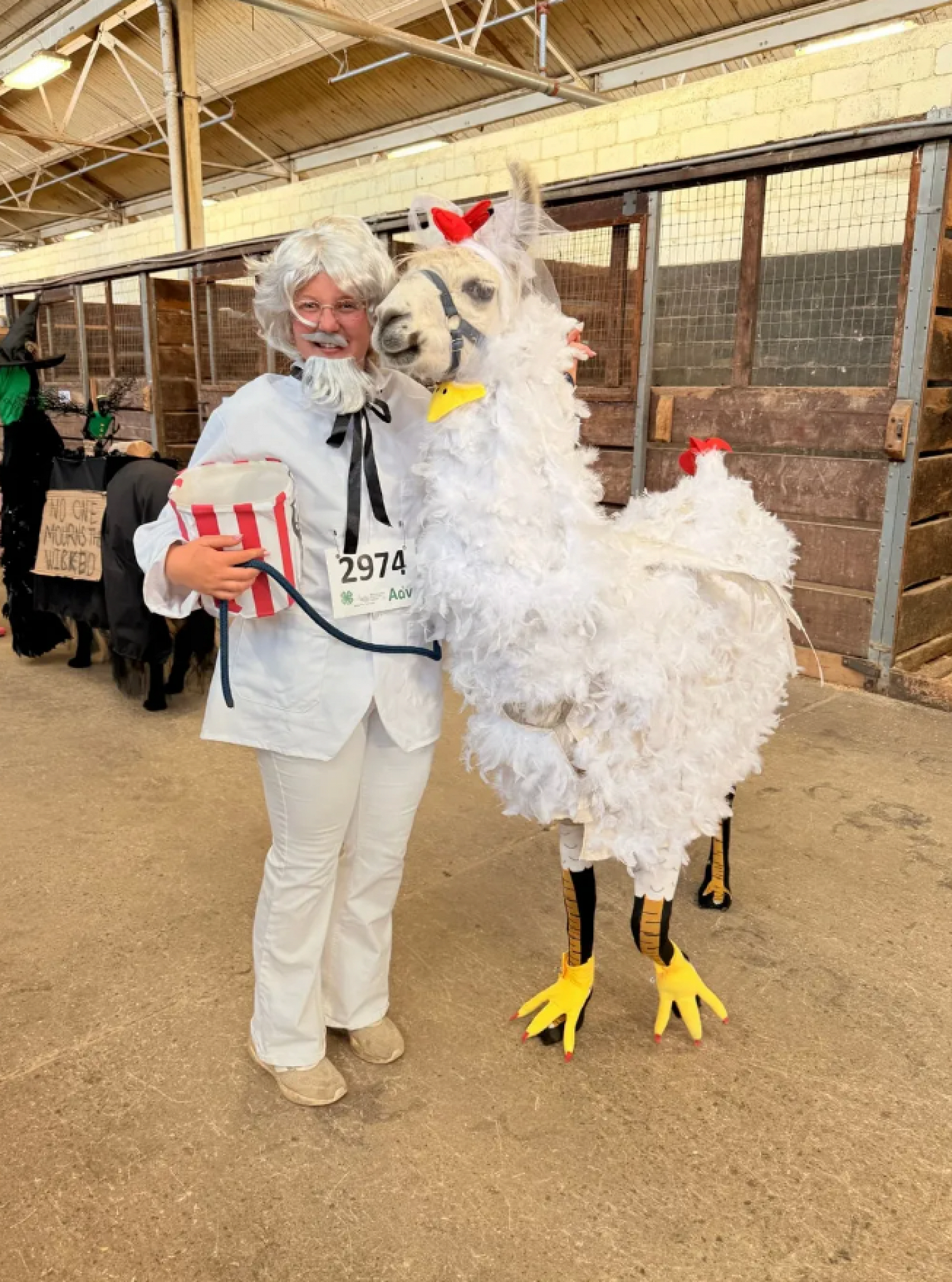 На ярмарке можно было увидеть животных в виде попкорна, фермерского ларька. Еще одно животное появилось в образе цыпленка вместе с хозяином, который изобразил основателя сети ресторанов быстрого питания Kentucky Fried Chicken Харланда Сандерса. Другая участница и ее владелец выбрали образ из «Wicked» — это популярный бродвейский мюзикл, основанный на истории Злой ведьмы из книги «Удивительный волшебник из страны Оз». Кто стал победителем конкурса, не уточняется.
