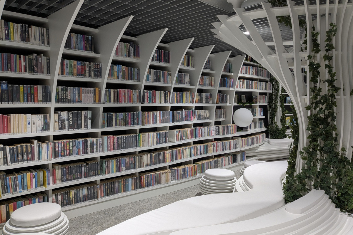 Библиотека предлагает две зоны для чтения — для взрослых и детей, а также площадку для публичных чтений и мероприятий. В общей зоне, оборудованной вайфаем и розетками, посетители могут учиться или работать.