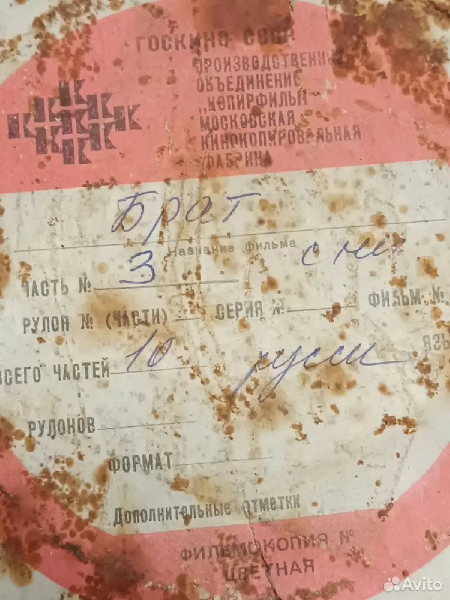 Как следует из атрибуции на катушке, пленка содержит третью из десяти частей фильма «Брат». Это цветная копия. К объявлению приложены фотографии с едва читаемыми пометками. Цена не указана, продавец запрашивает предложения от покупателей.