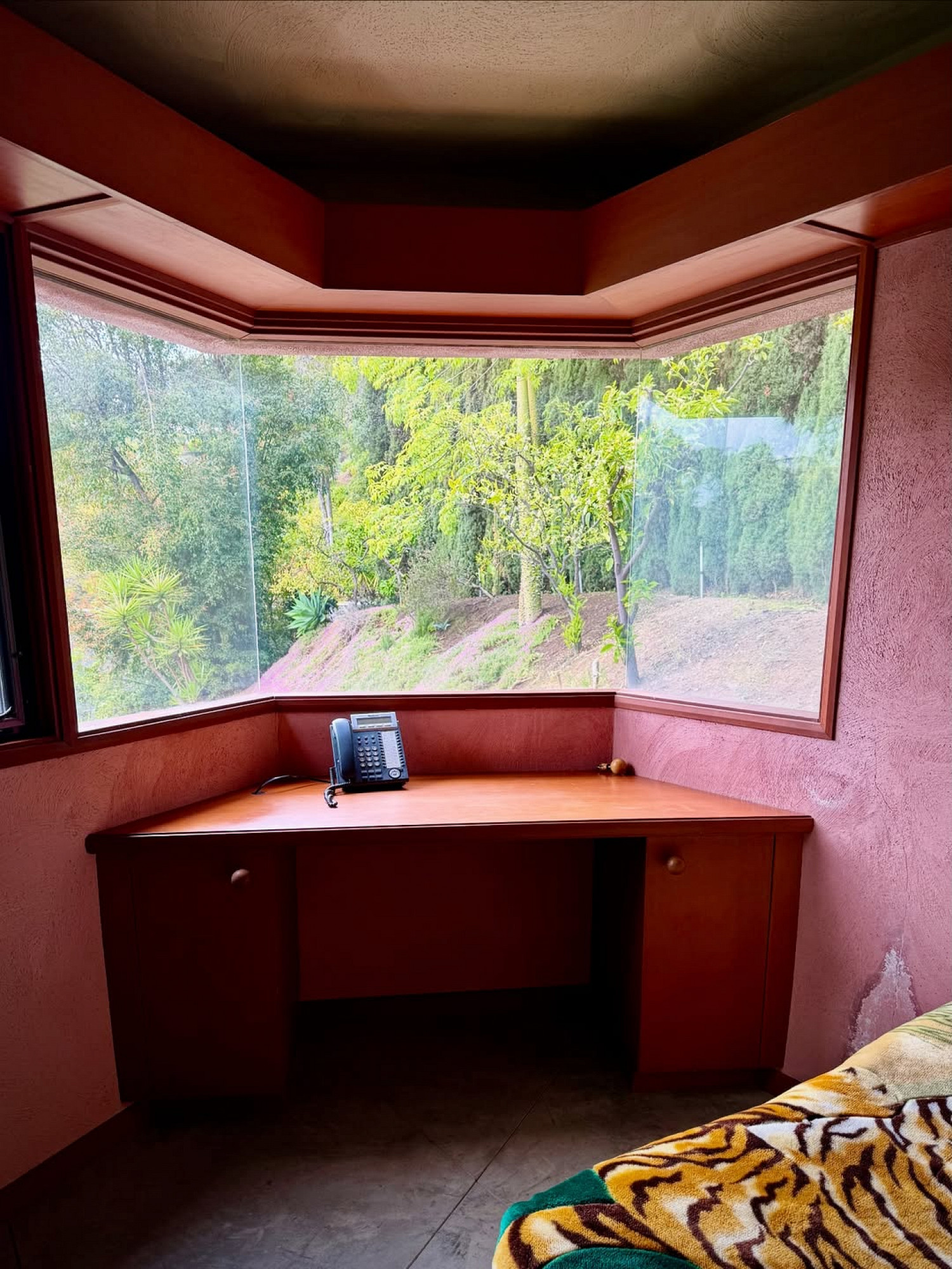 Интерьер во всех зданиях минималистичный и геометричный, используются неожиданные сочетания цветов. В доме есть панорамное окно на холм и камин. По запросу Линча на территории также возвели бассейн и двухэтажный гостевой дом.