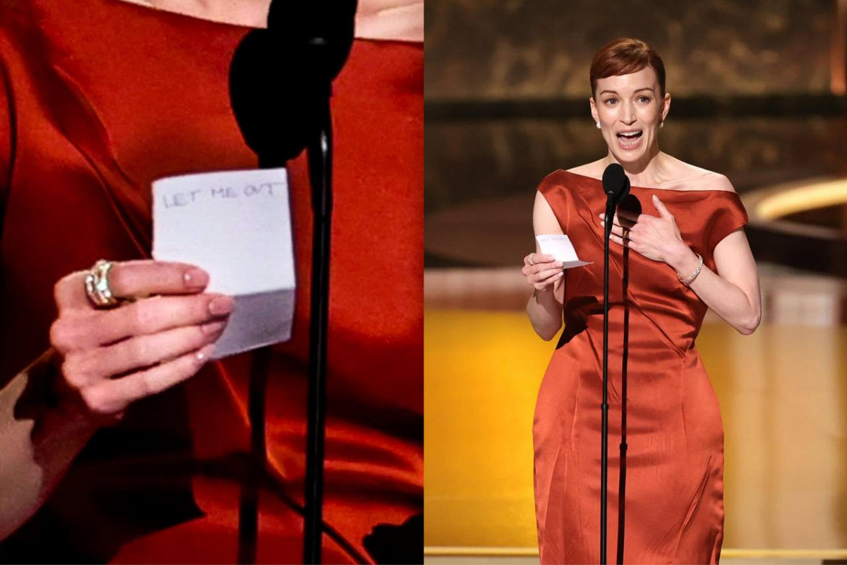 В благодарственной речи Лоуэр придерживалась традиционной структуры. Актриса сказала: «Прежде всего уже большая честь для меня — даже быть упомянутой в одном ряду с такой невероятной группой артистов. Ого! Я разделяю эту награду со своим героическим актерским составом и съемочной группой, чья работа катализирует мою». Она поблагодарила родственников и друзей — но на оборотной стороне бумажки с речью значилось «Выпустите меня».