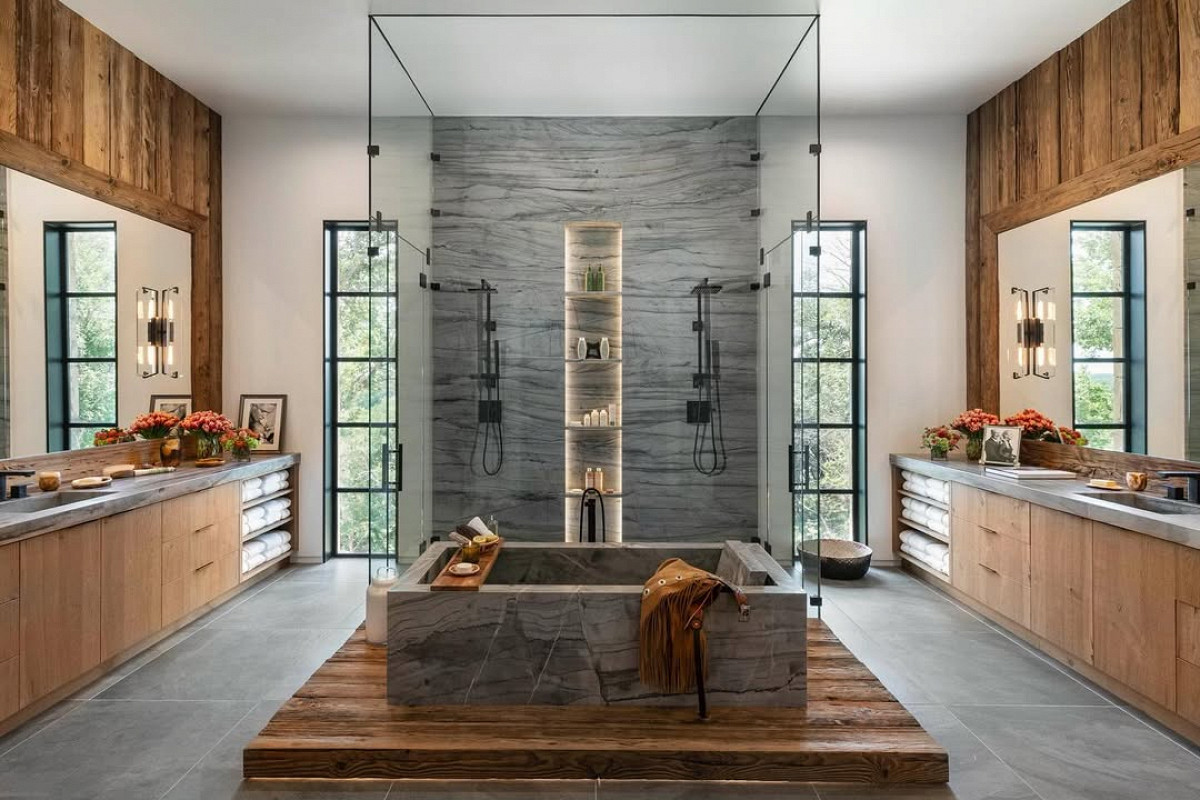 В основном доме есть три спальни, пять ванных комнат и пять каминов, а также несколько гостиных и столовых. В каменном амбаре, построенном в 1776 году, находятся развлекательное пространство, тренажерный зал и профессиональный конный комплекс.