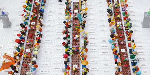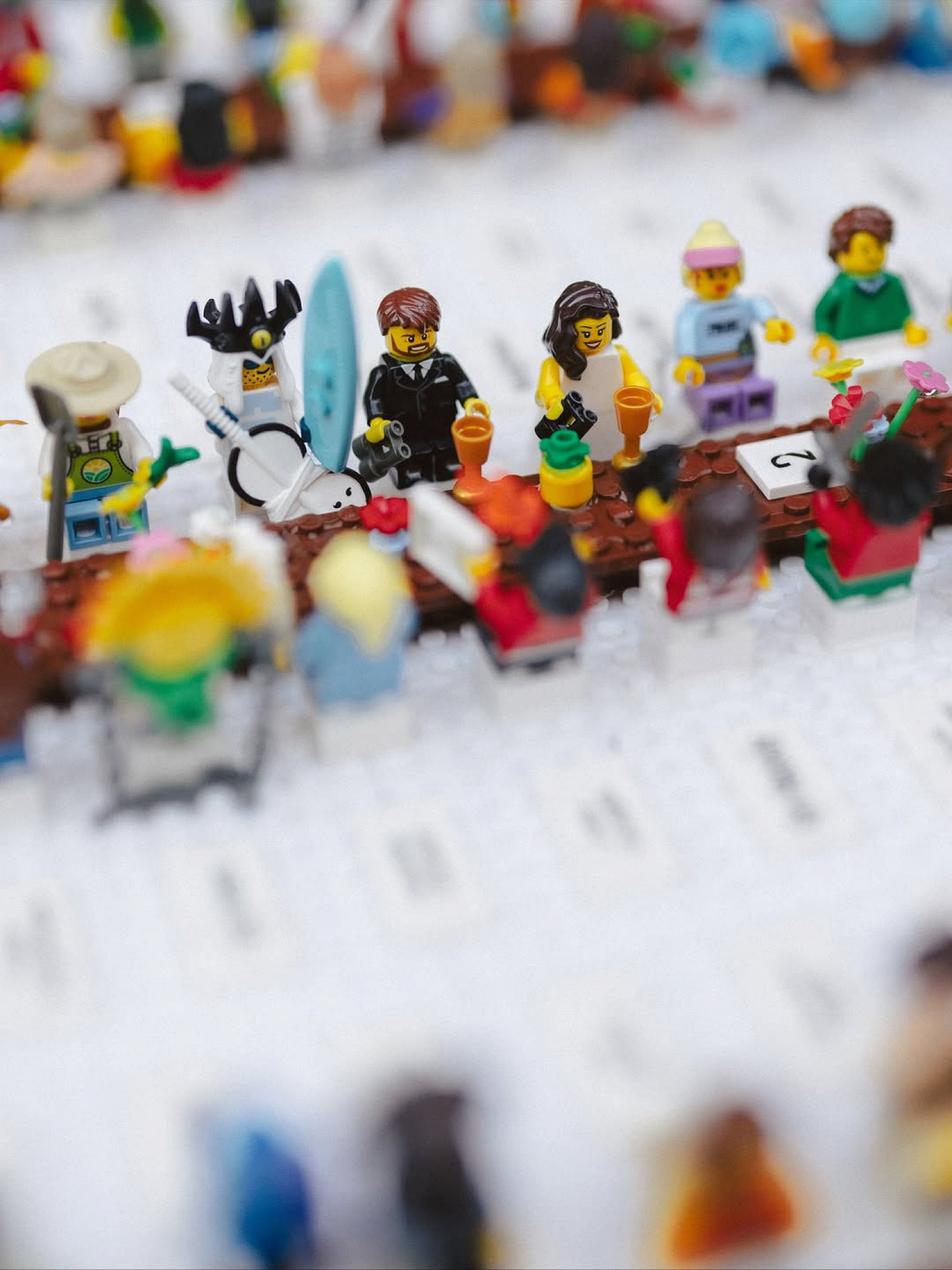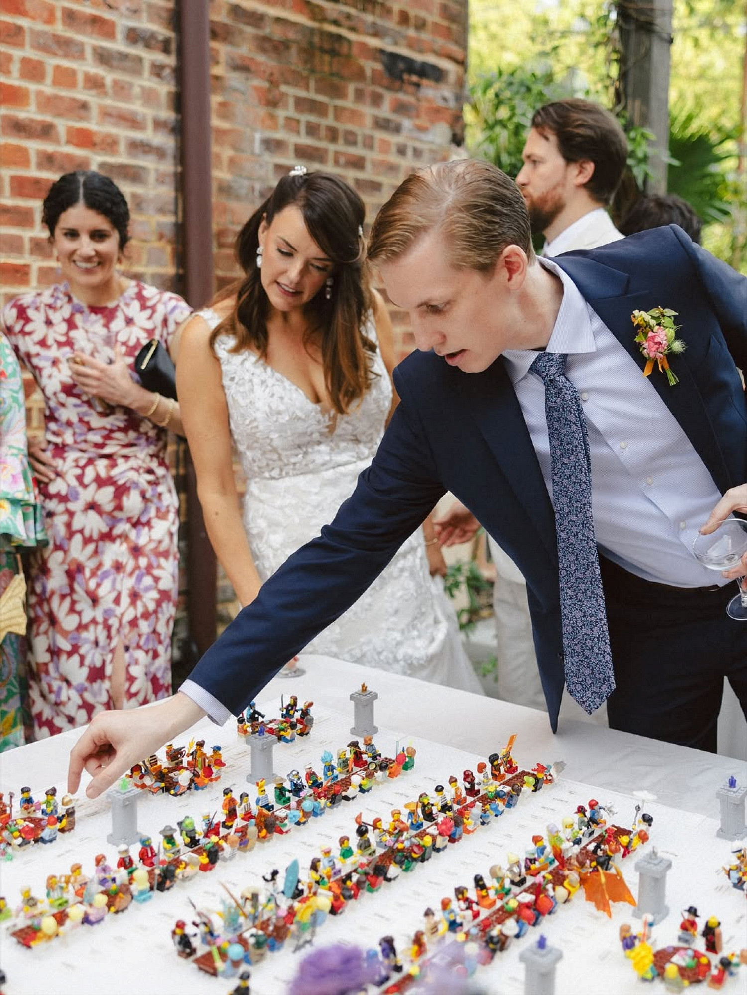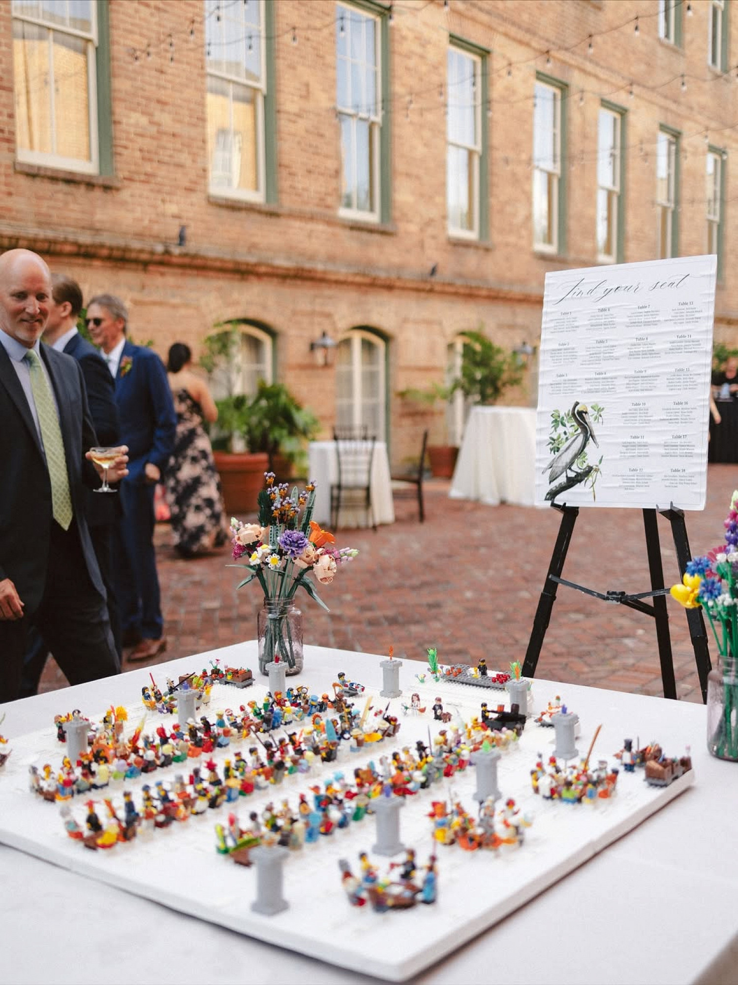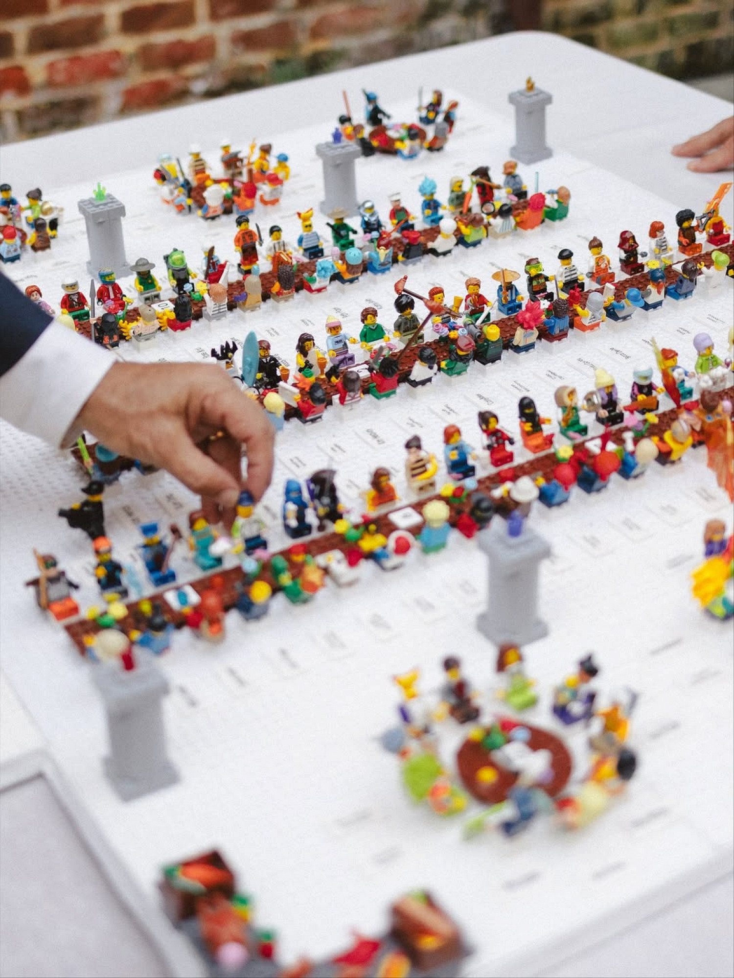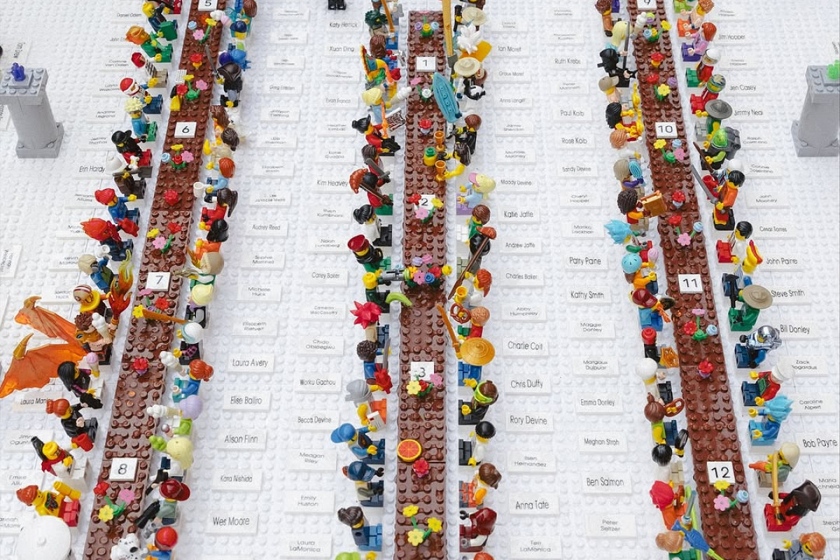 В США на свадьбе молодожены сделали схему рассадки с помощью фигурок LEGO. Они появились на welcome-зоне торжества. При этом все фигурки отличались друг от друга.