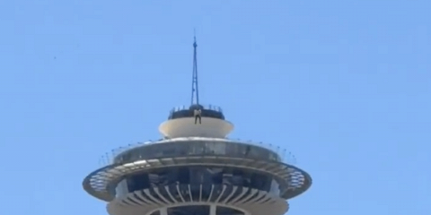 Актера в роли архангела Гавриила уже заметили на башне Спейс-Нидл в Сиэтле и на знаке Голливуда в Лос-Анджелесе. Крылатая фигура с улыбкой взирает на город с высоты.