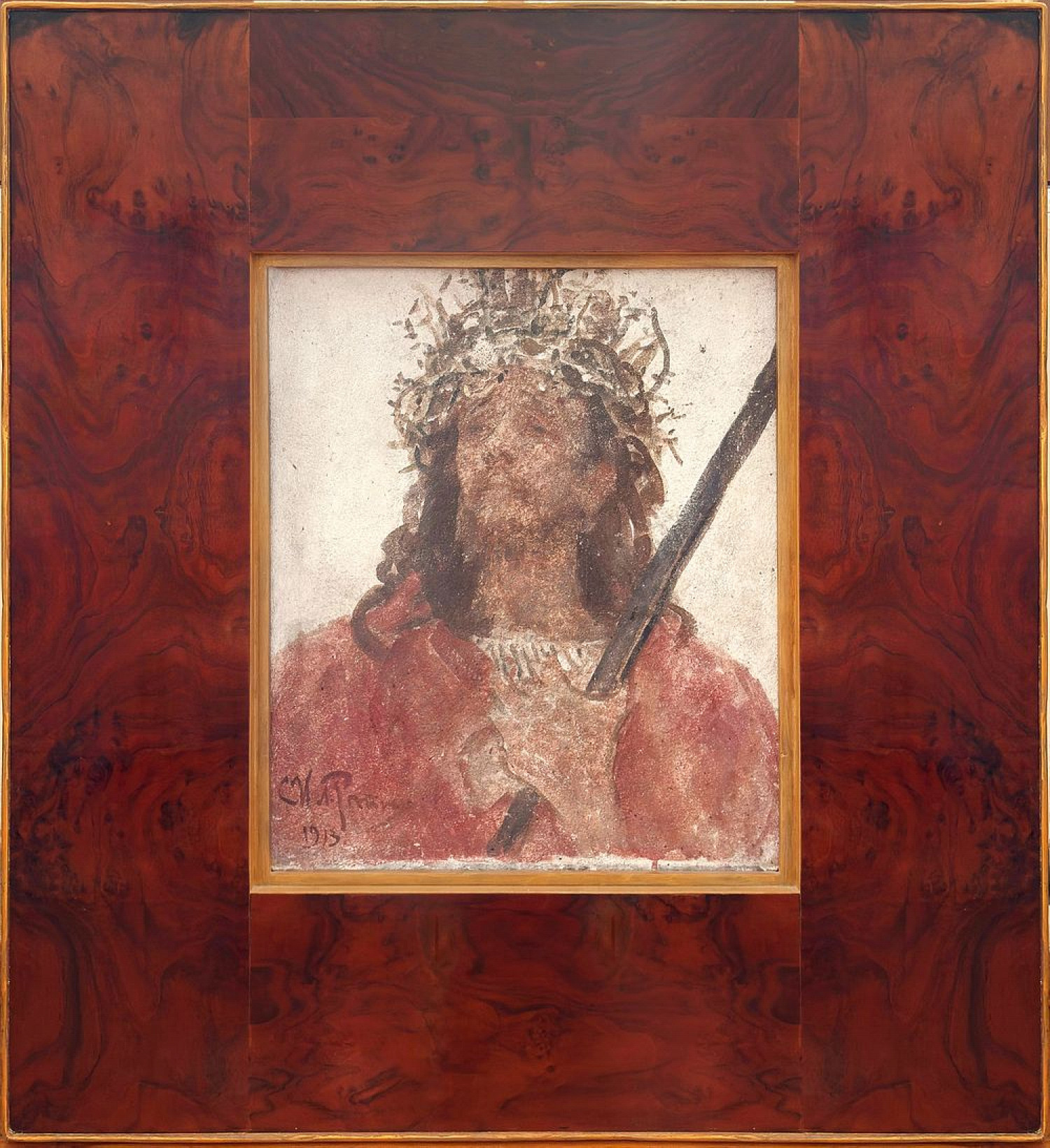 Другим редким лотом станет произведение Ильи Репина «Христос в терновом венце» (1913), выполненное в технике фрески. Это единственный сохранившийся пример монументальной живописи мастера, оцененный в 35 млн рублей.