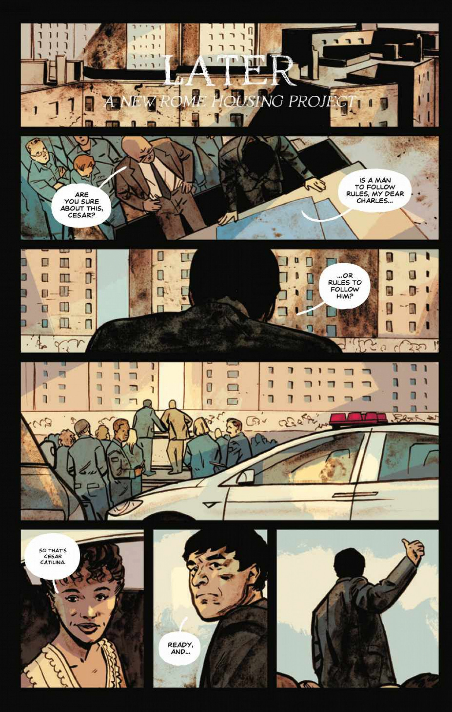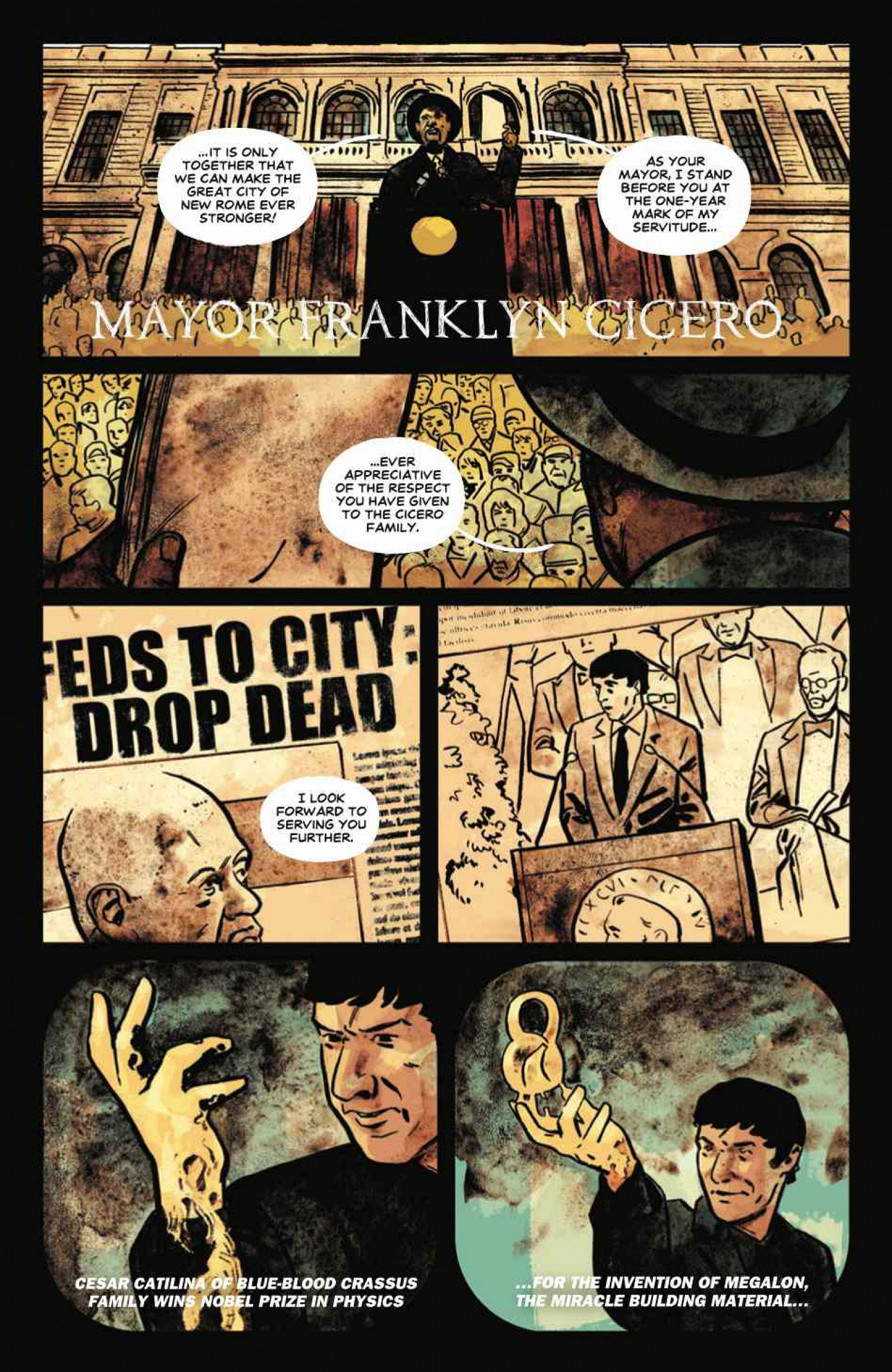 Опубликованный отрывок представляет ключевых героев истории: мэра Цицерона, его дочь Джулию, архитектора Цезаря Каталину.