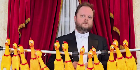 В сети завирусились два видео, снятые бразильским пианистом и блогером Фабрисиу Андре Бернардом ди Паулу (Лордом Виньетейру). Музыкант сыграл «Bohemian Rhapsody» Queen на игрушечных курах для животных.