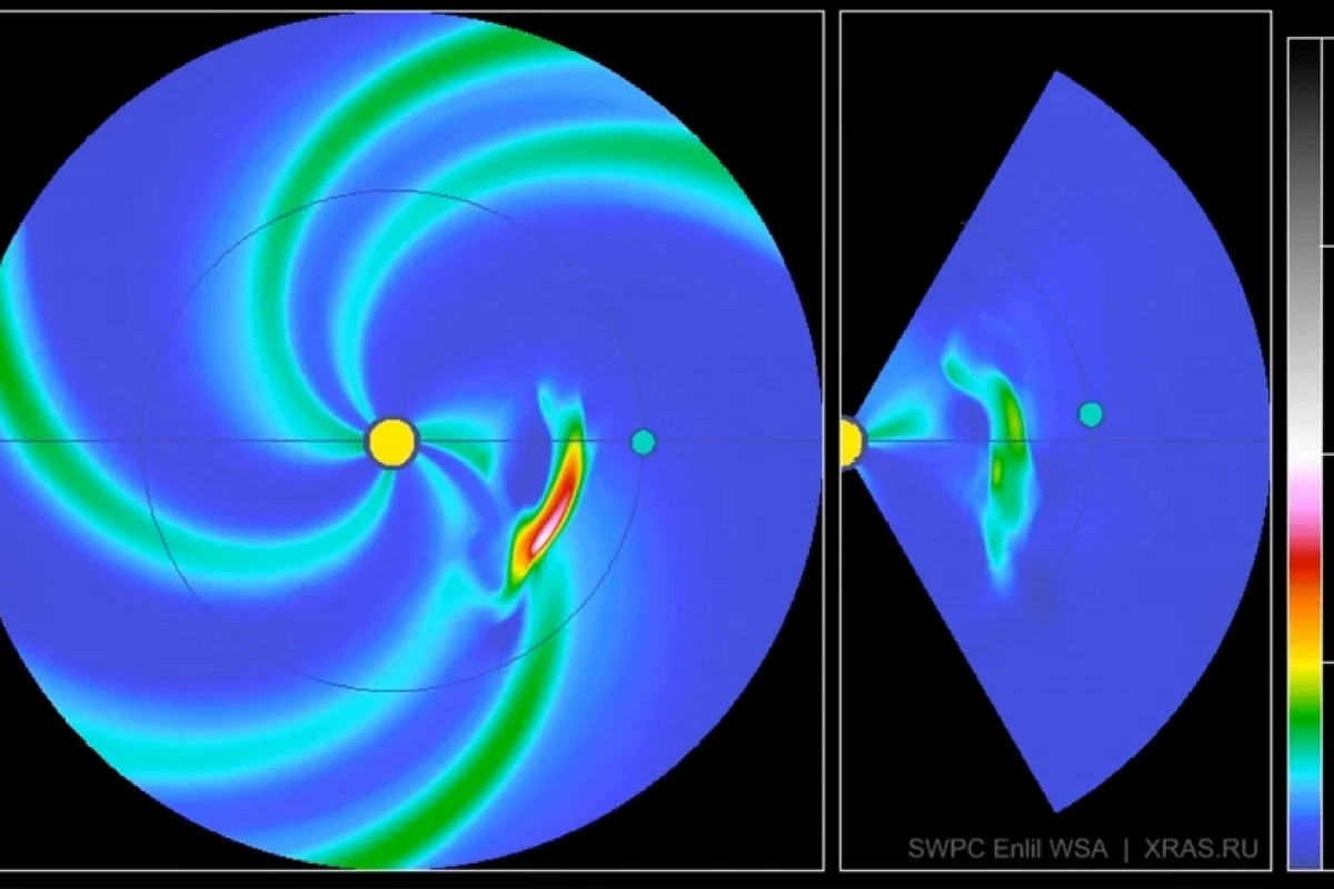 Cолнечные выбросы достигают нашей планеты за 2–3 суток, двигаясь со скоростью не менее 600 километров в секунду. Однако сейчас плазменное облако могло замедлиться, но все же достигнуть Земли за 4–5 суток, смешавшись с солнечным ветром.