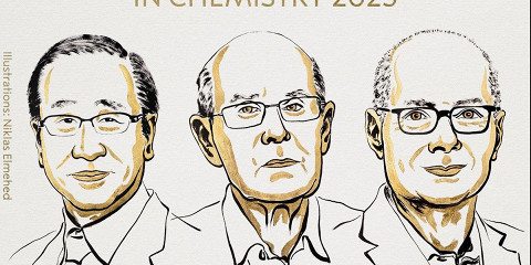 Нобелевскую премию по химии в 2025 году присудили Сусуму Китагаве, Ричарду Робсону и Омару М.Яги. Ее вручили за разработку металлоорганических каркасов.